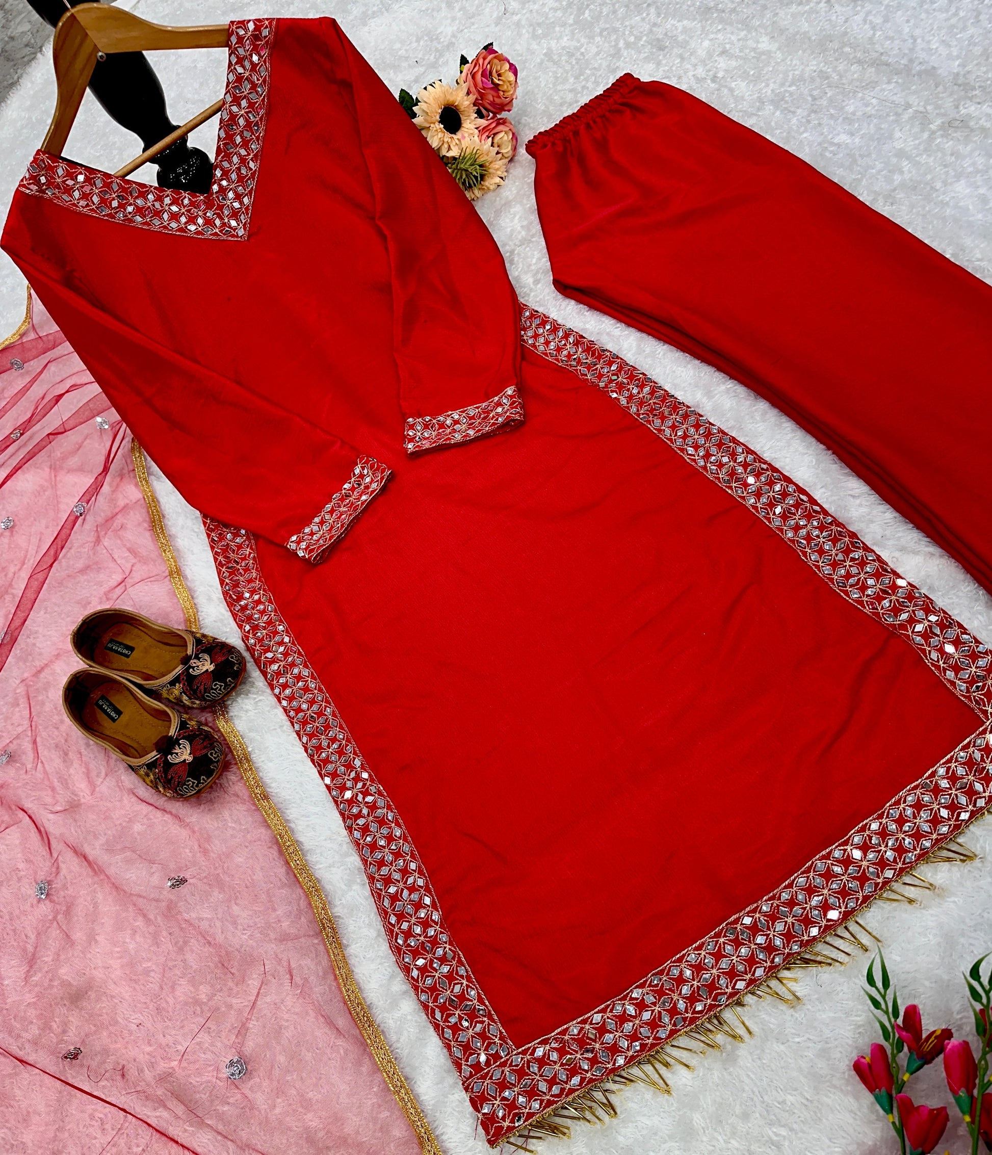 *#TOP FABRIC* : HAVY CHINON SILK WITH HAVY EMBRODAY MIROR WORK