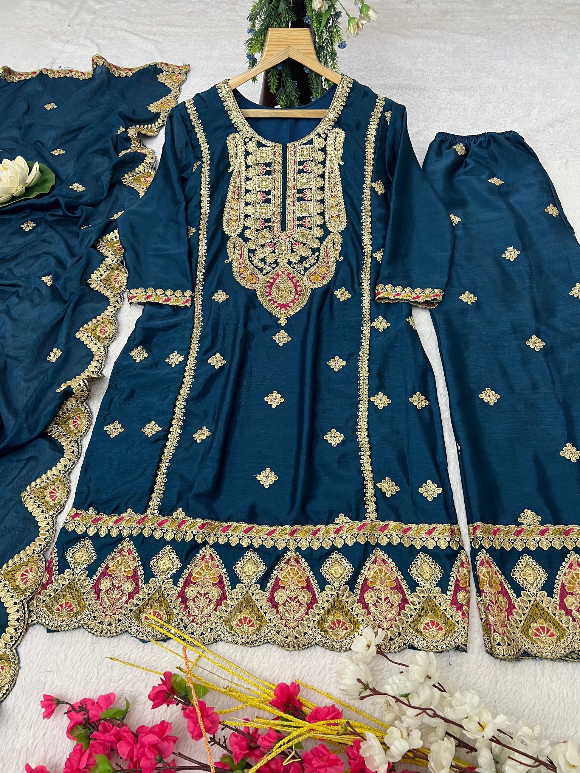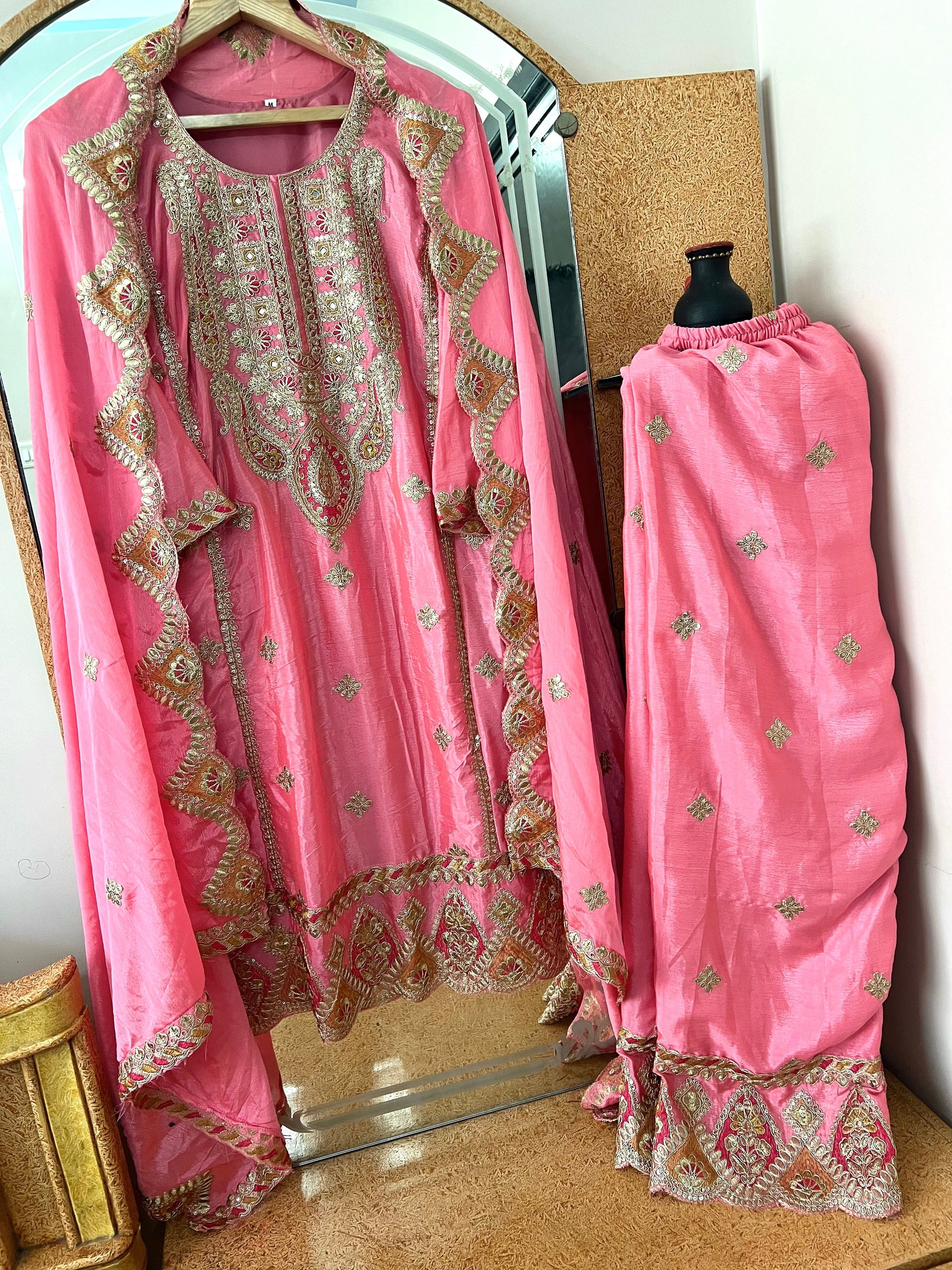 *Pent Fabric*:- Heavy Pure Chinon Silk Fabric With Silk inner Coming pant Fully stitched (full stiched)