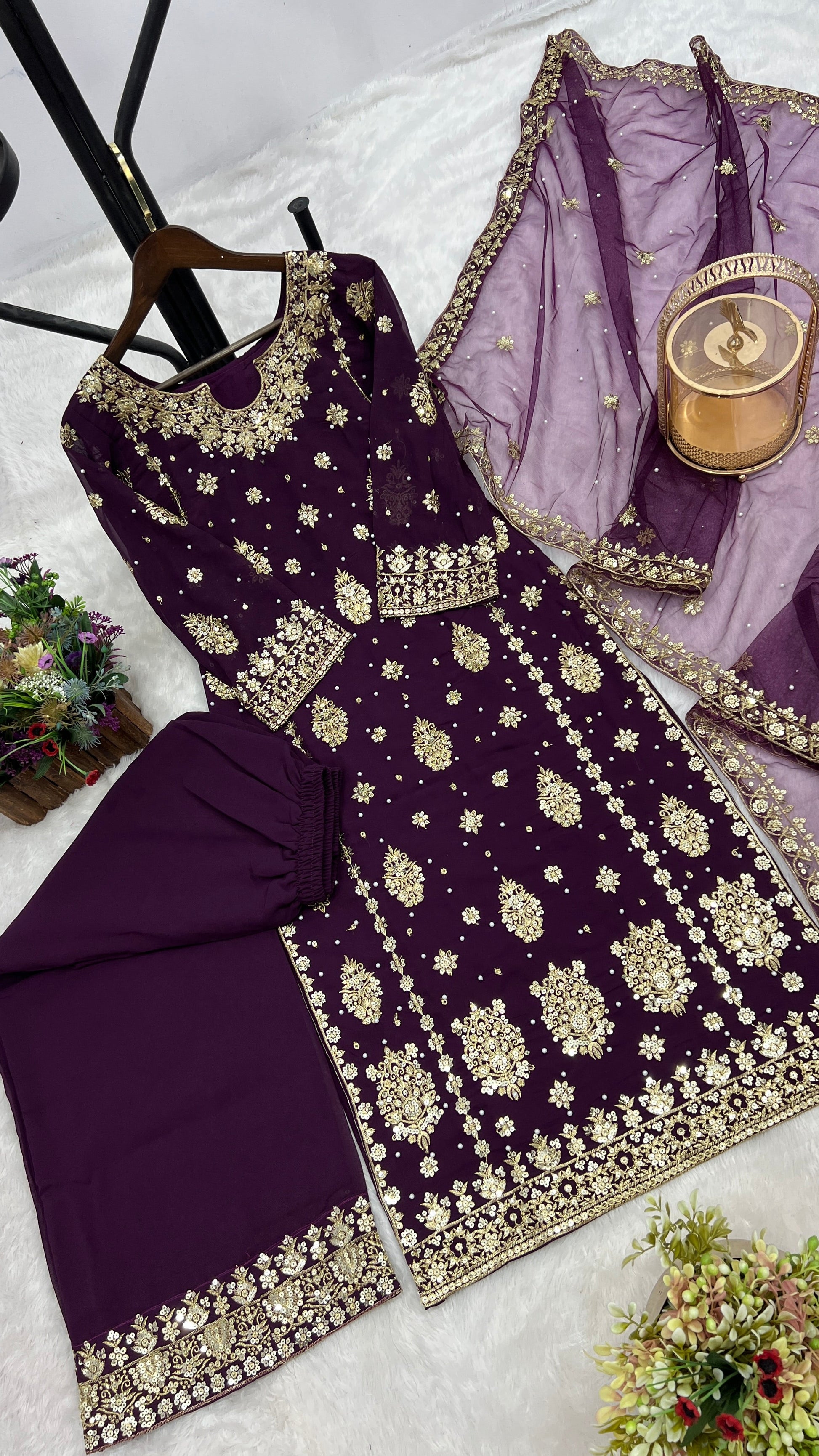 *PRESENTING 3 PIECE STYLISH KURTI DUPATTA WITH BEAUTIFUL PLAZZO*