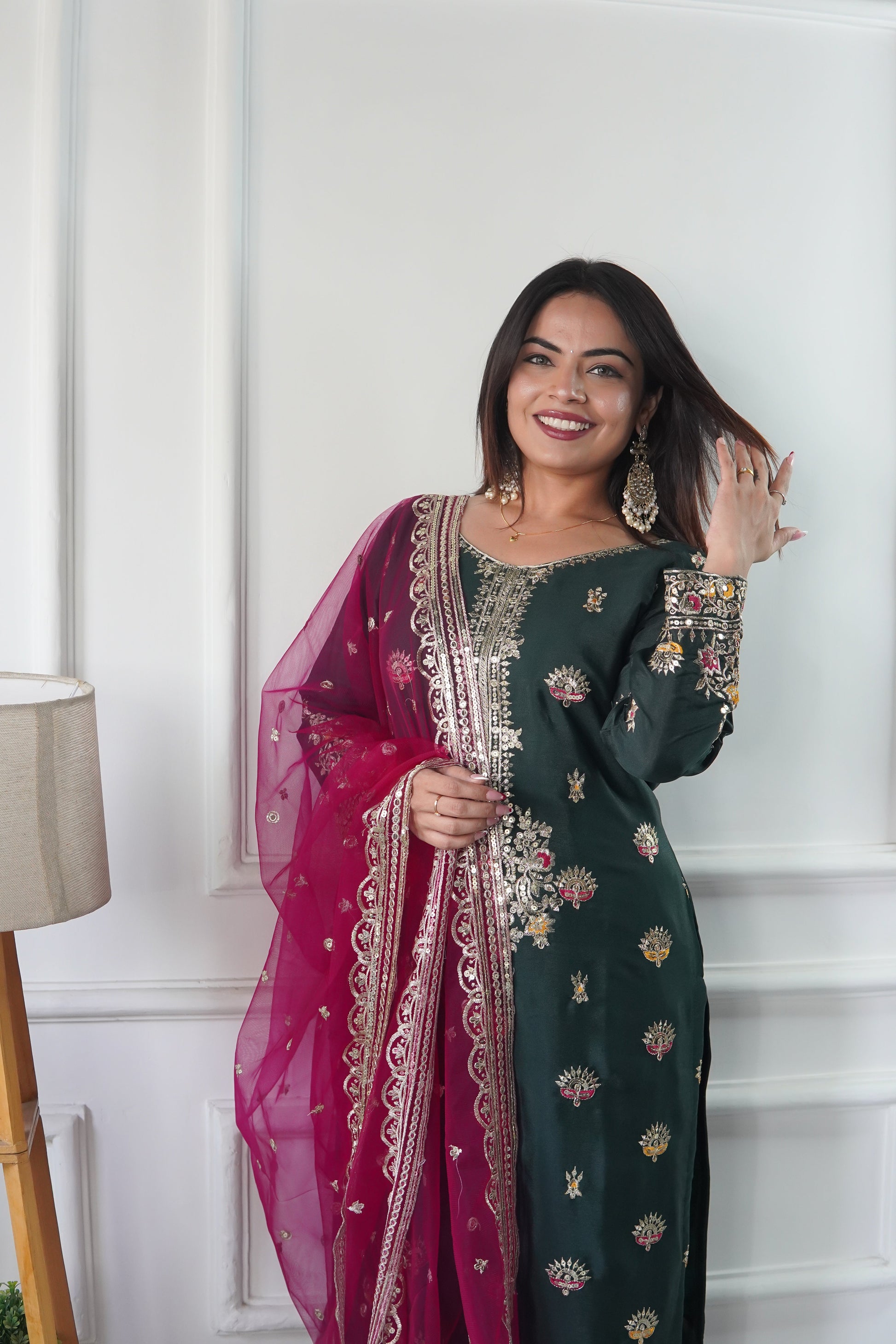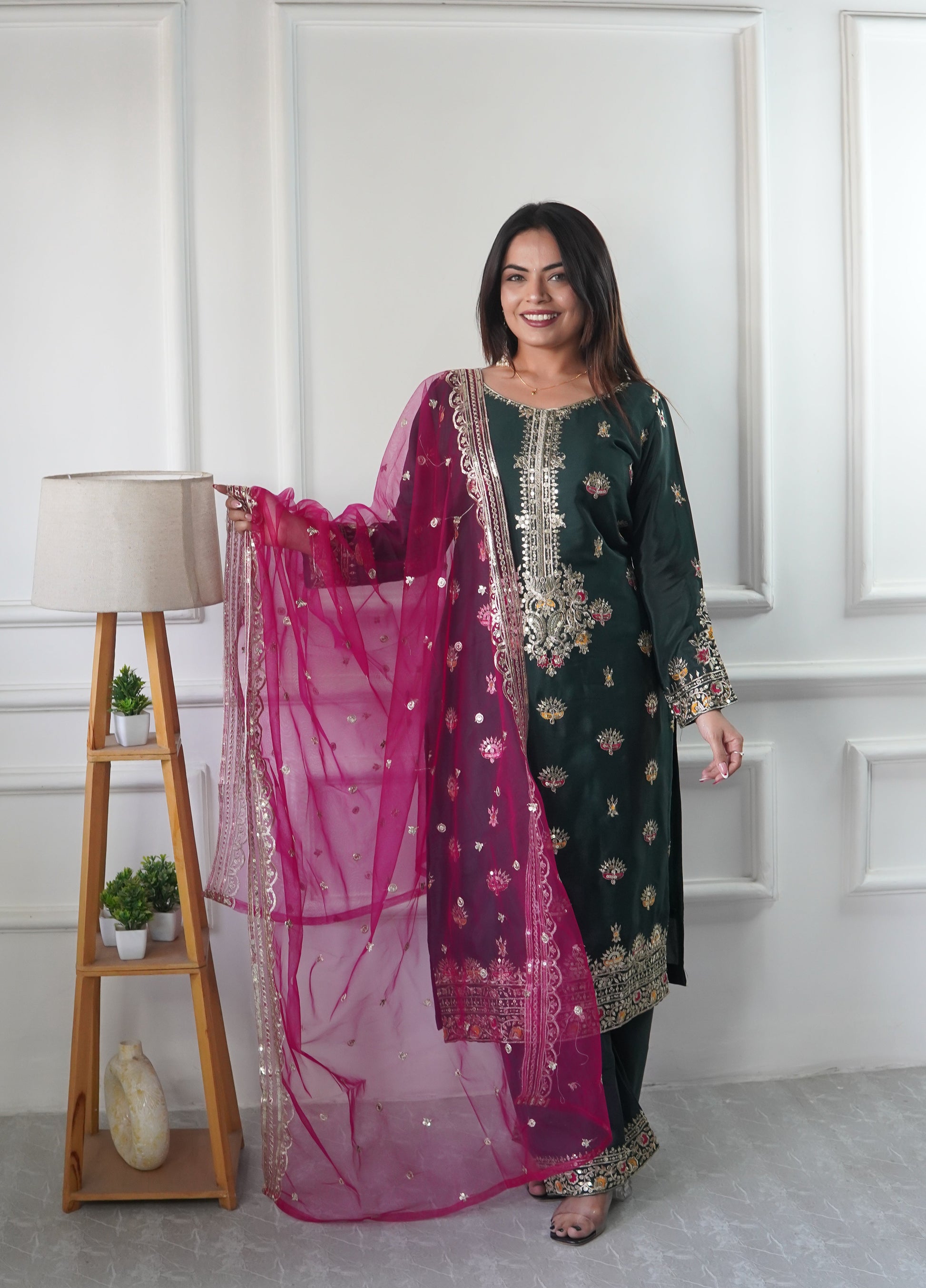 Presenting New WW REAL MODLING Vichitra Silk Top-Plazzo and Dupatta Set Fully Stitched Ready To Wear