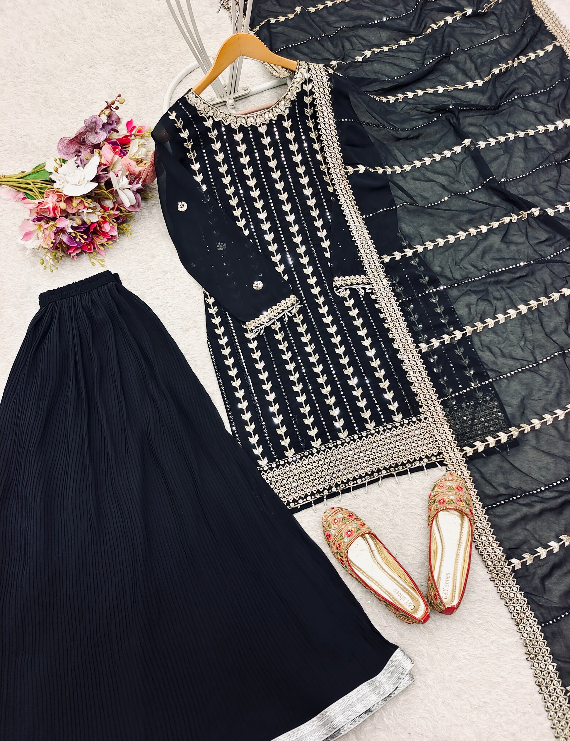 *Top Fabric* : Pure Fox Georgette With Heavy Embroidery 5mm Sequence Work With Full-Sleeves With Fency moti Less Work