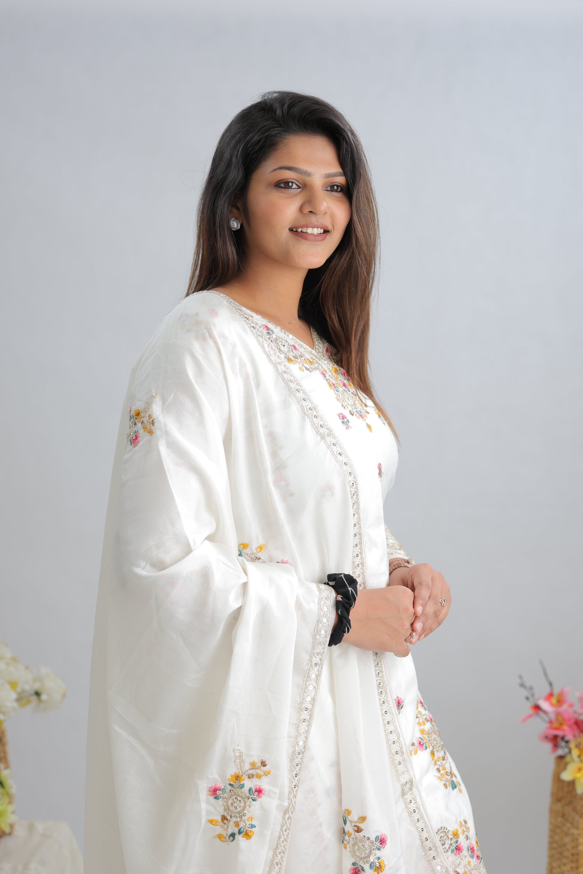 *Dupatta Fabric* : Pure Cinon Silk With 5mm Siqwans Embroidery Work With Full-Stitch