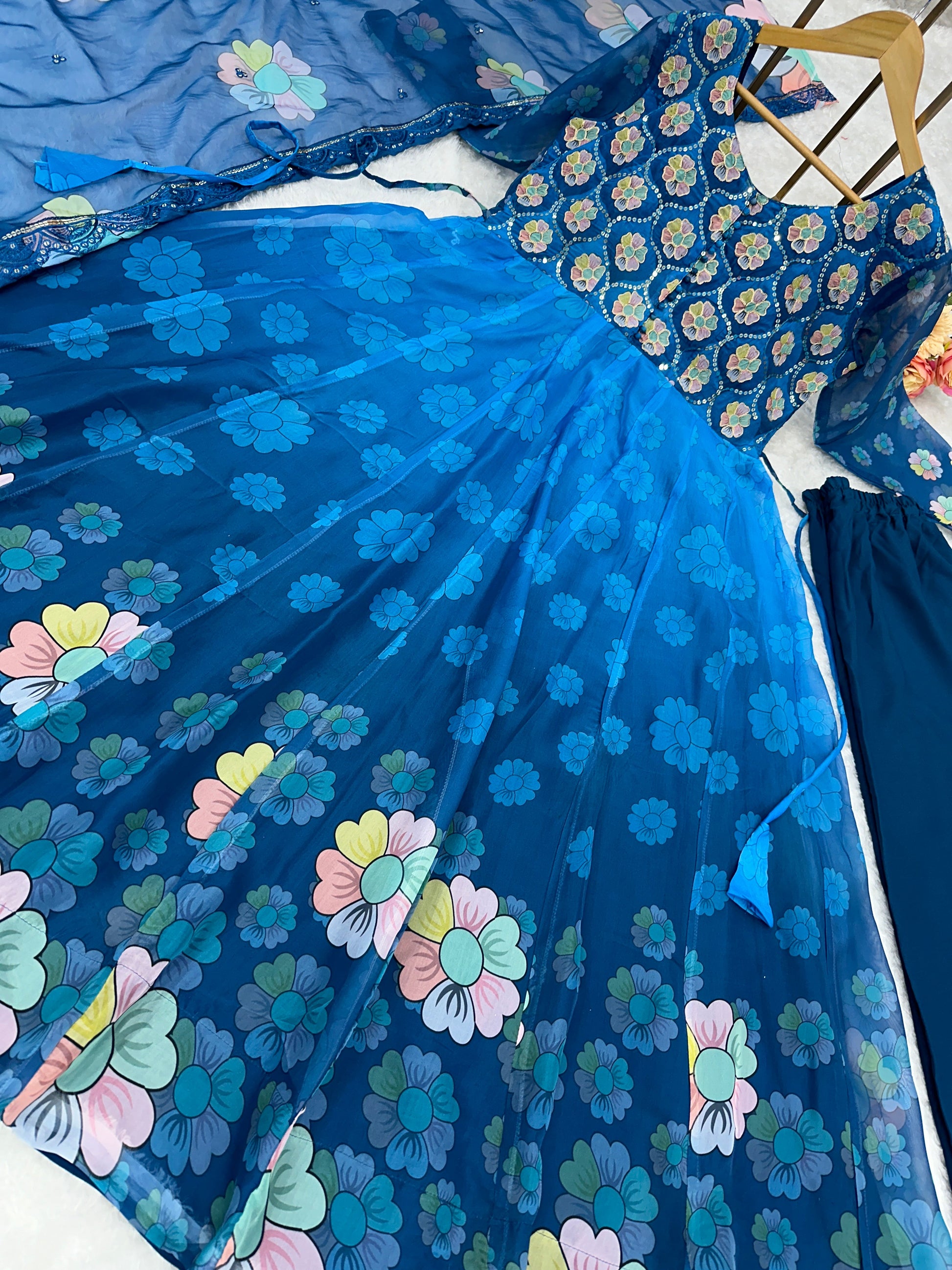 Party Wear Designer Gown Pent And Dupatta With Digital Work