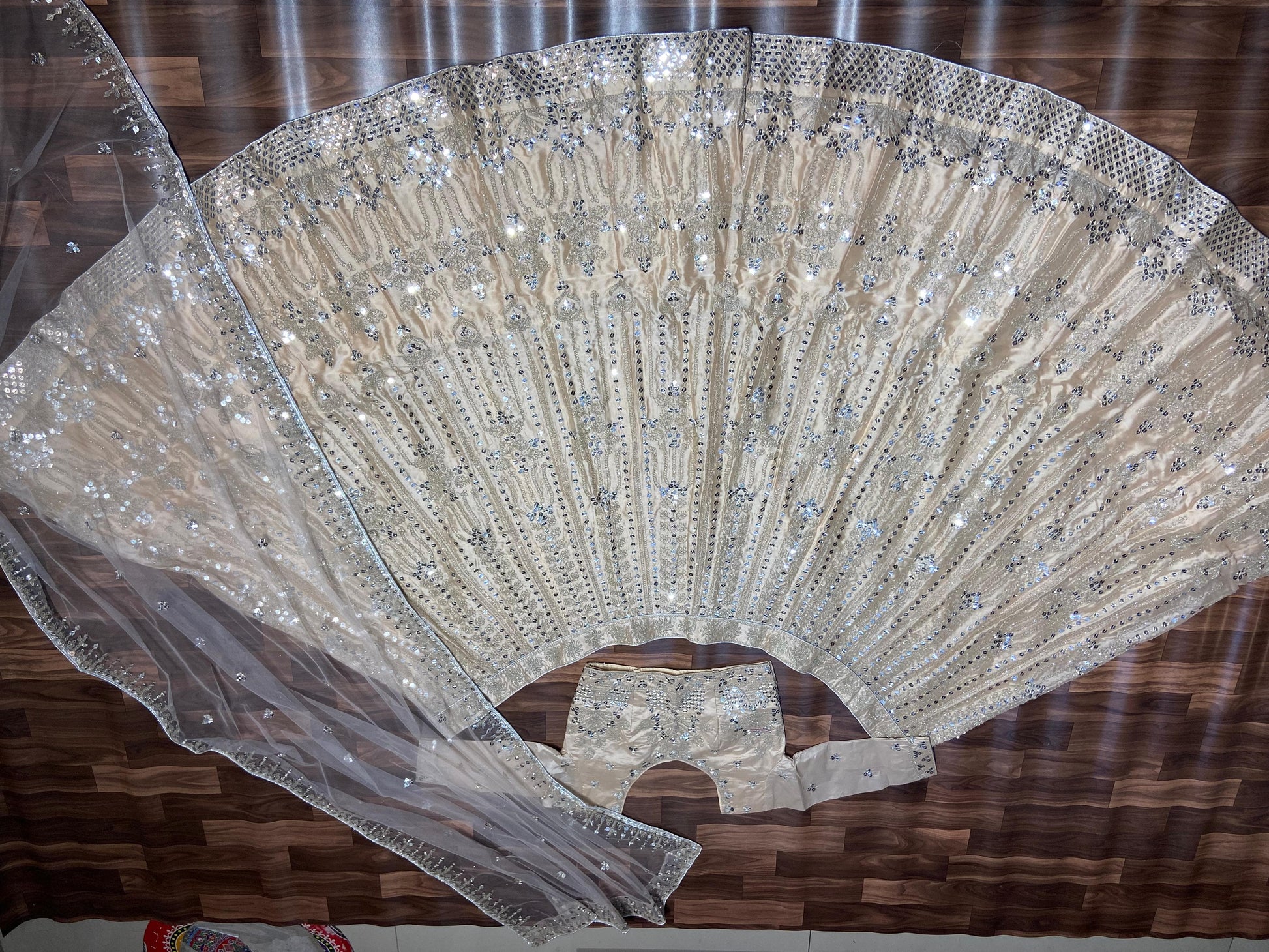 Blouse : *Premium Malai Satin Embellished With Beautiful Embroidery Work, Coding And Heavy Sequins Work Both Side Work Front And Back With Sleeves*( Unstitched Fabric )