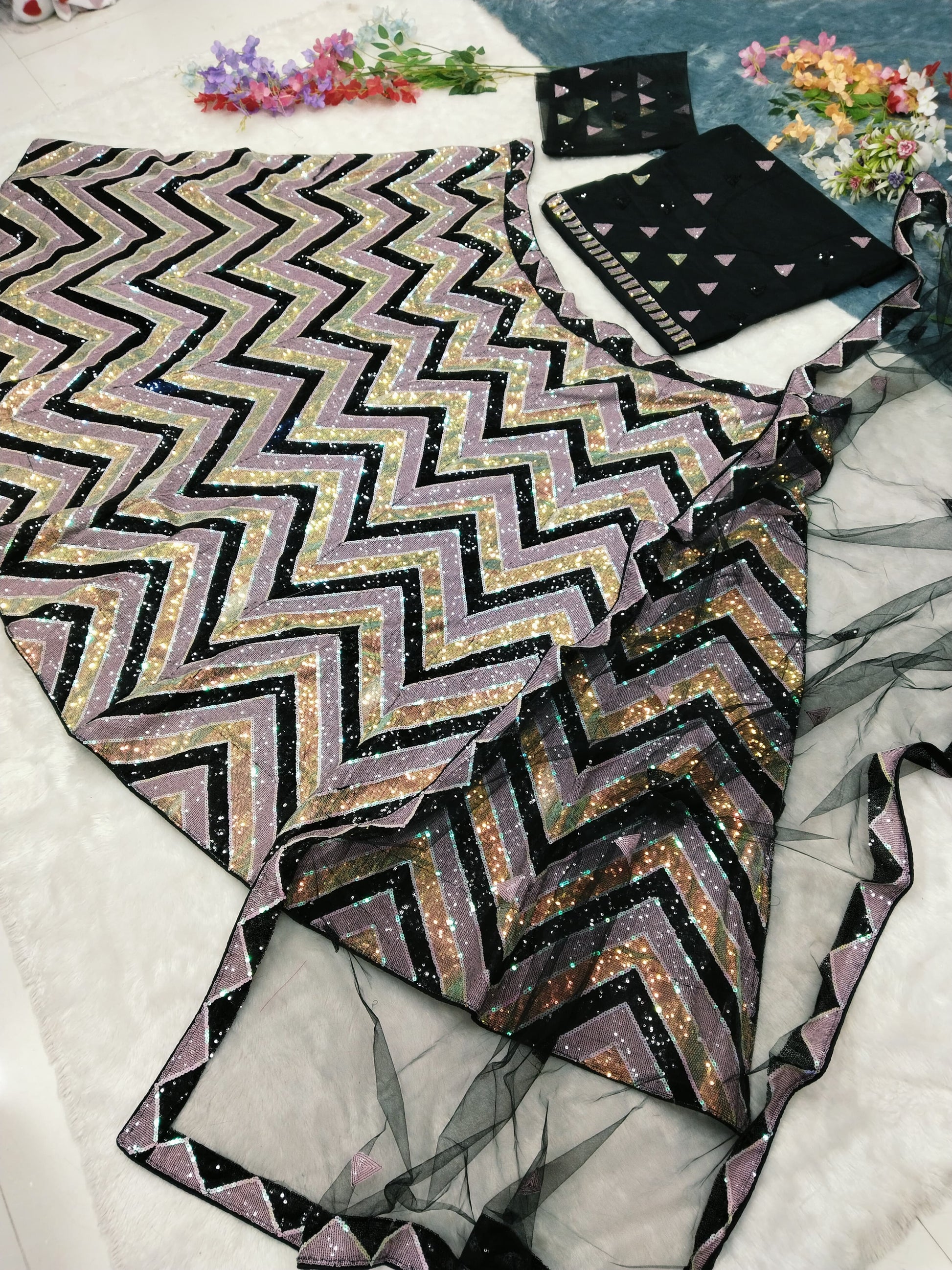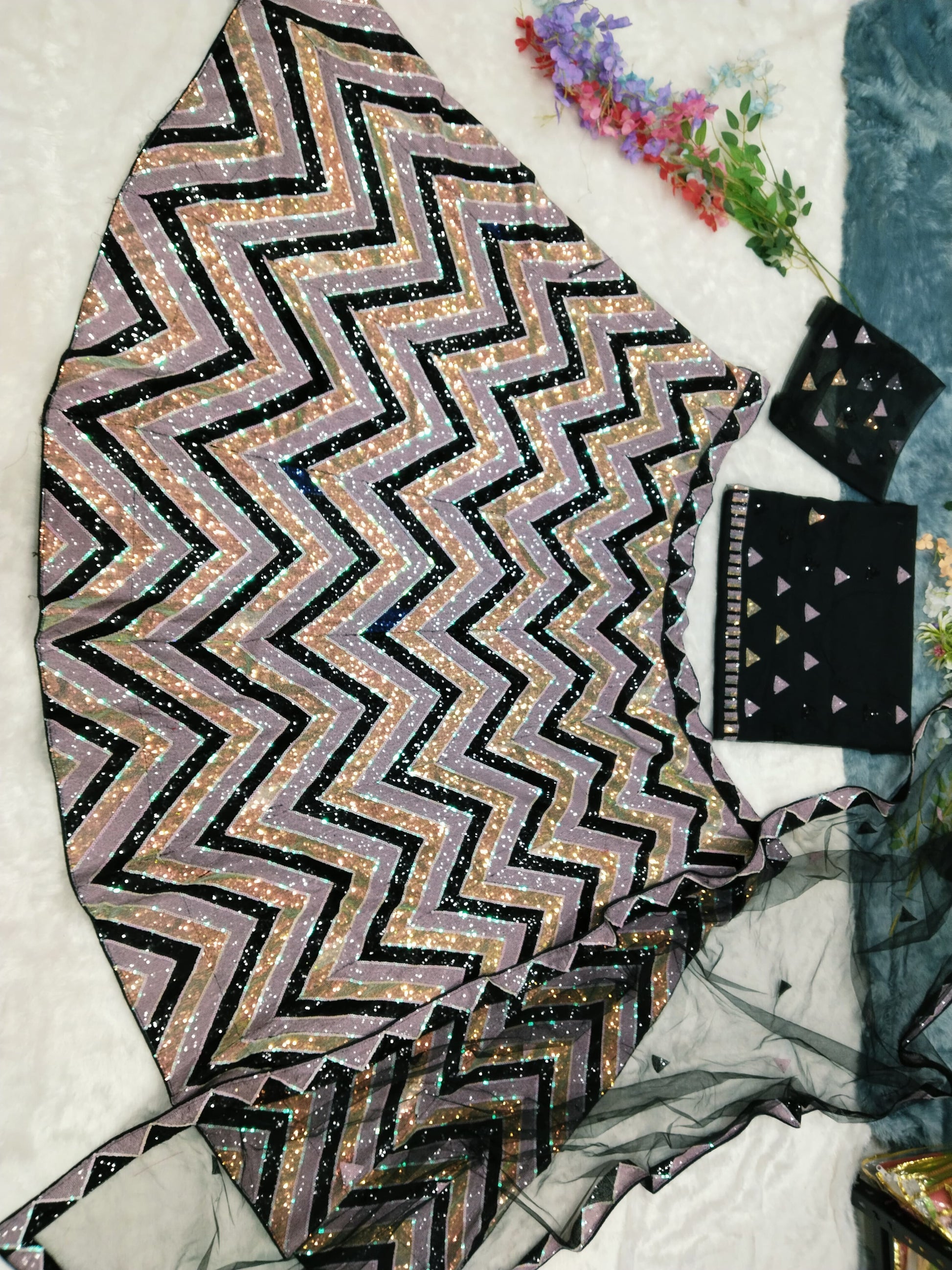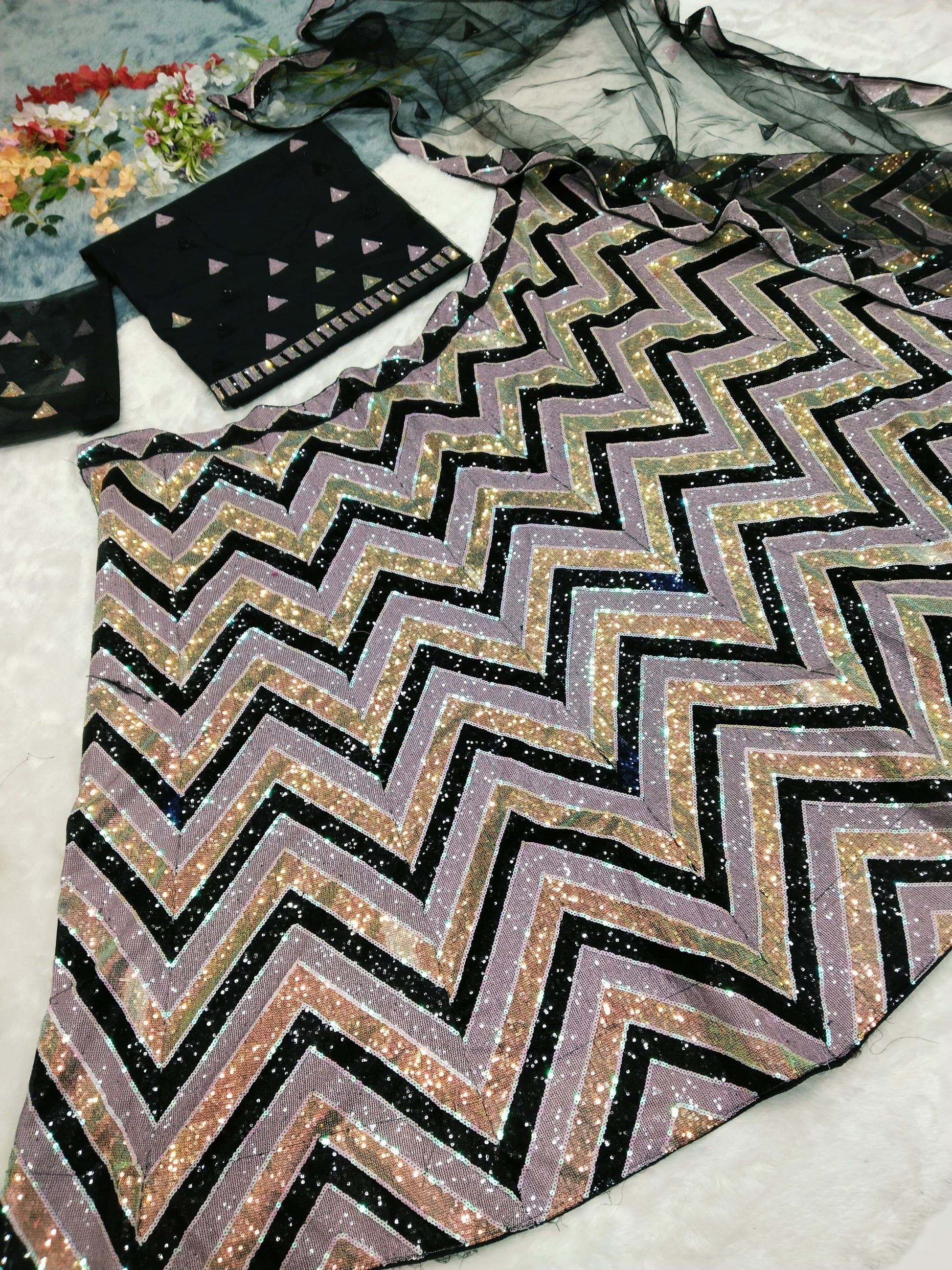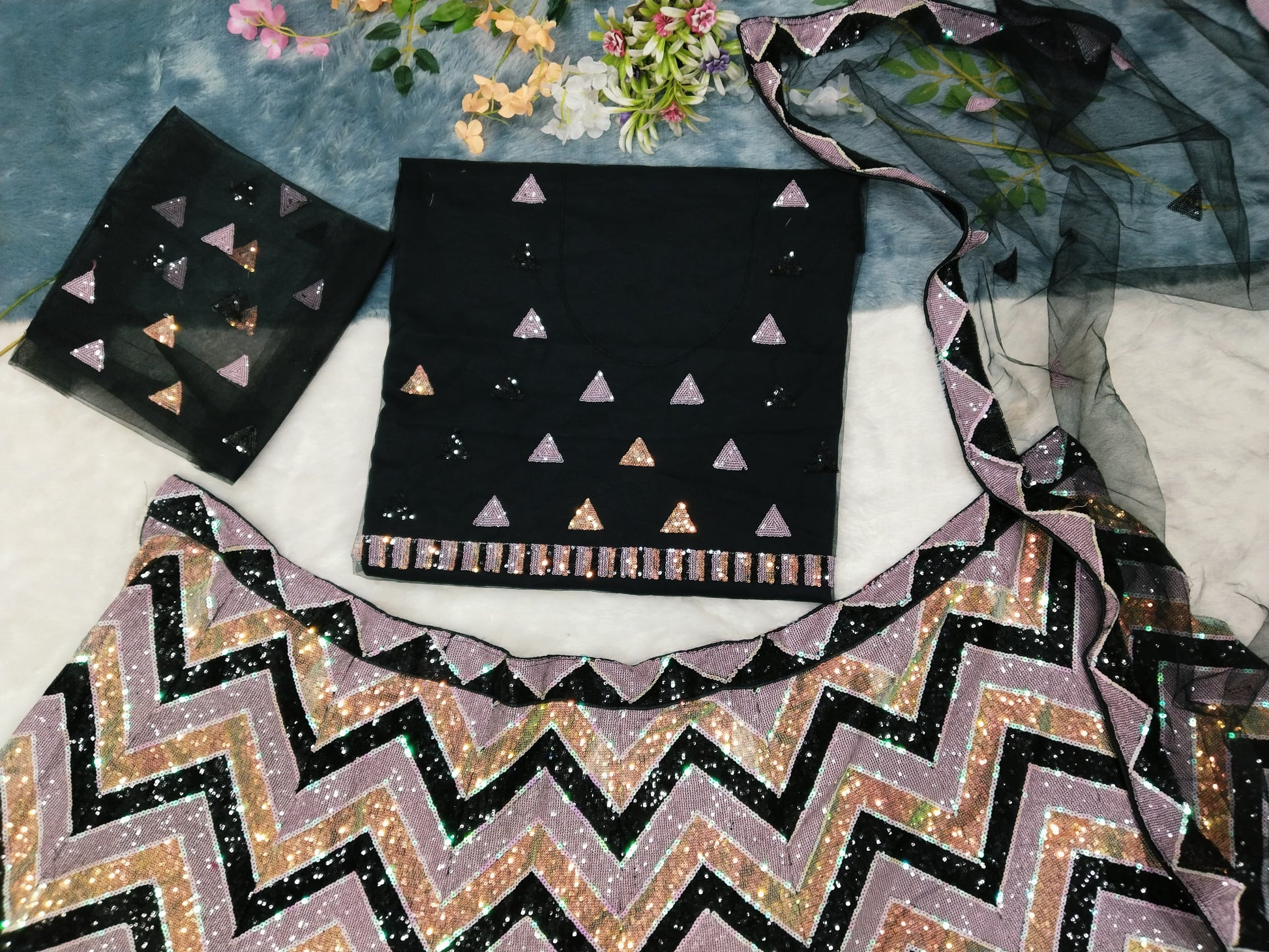 Dupatta : *Premium Net Embellished With Thread Embroidery Work With Heavy Four Sequins Work*( 2.3 MTR )