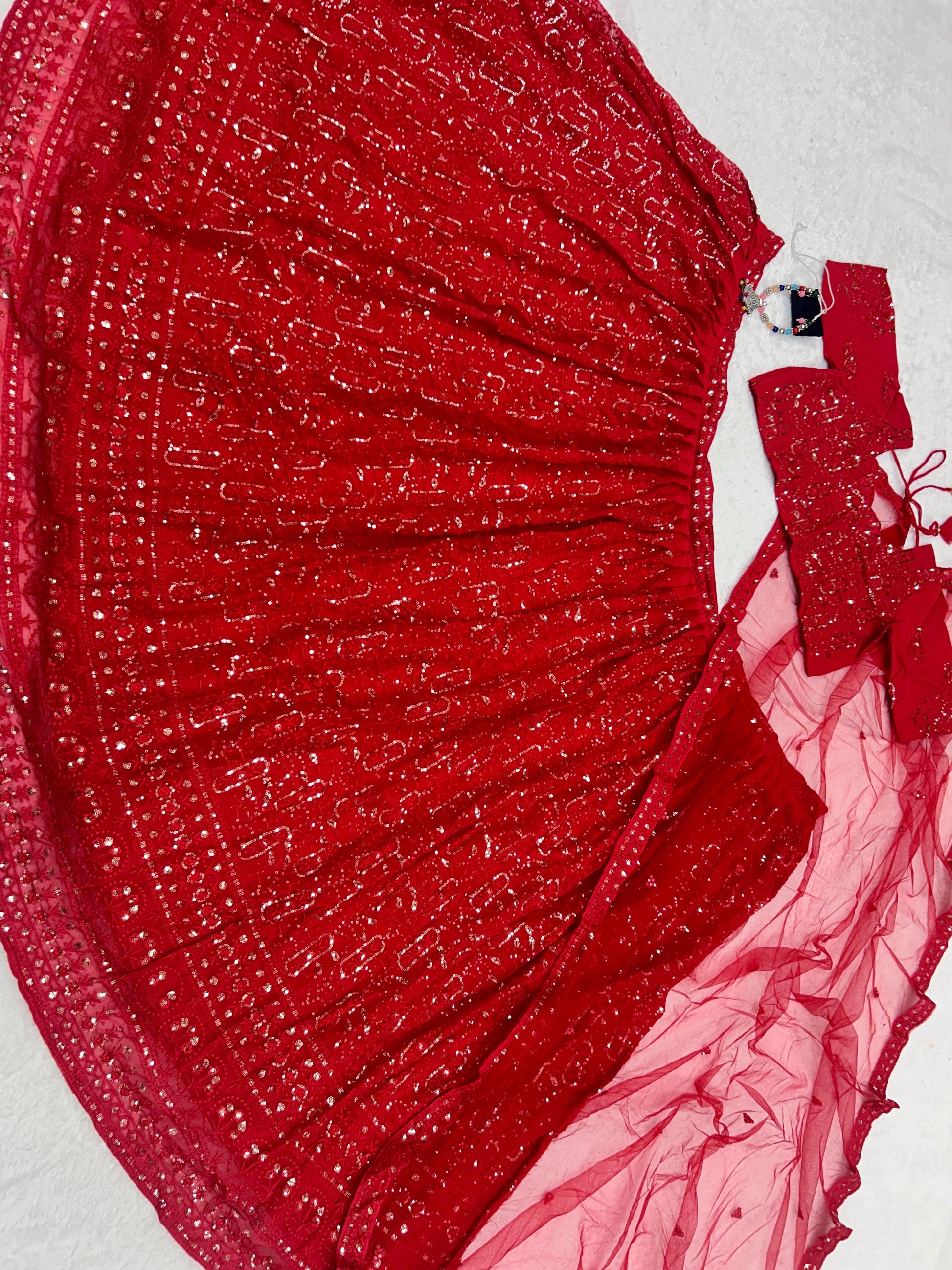 _FABRIC :*Faux Gorgette Silk With Heavy Embroidery 3mm Sequence work Coming With Fully Unstiched*_