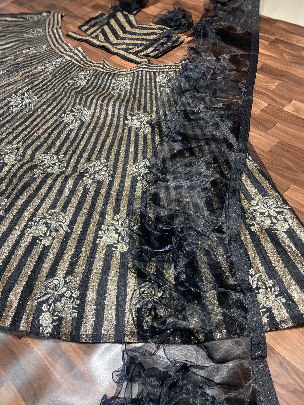 Dupatta : *Premium Heavy Organza Silk With 2 Beautiful Ruffle Layers*( 2.5 MTR )