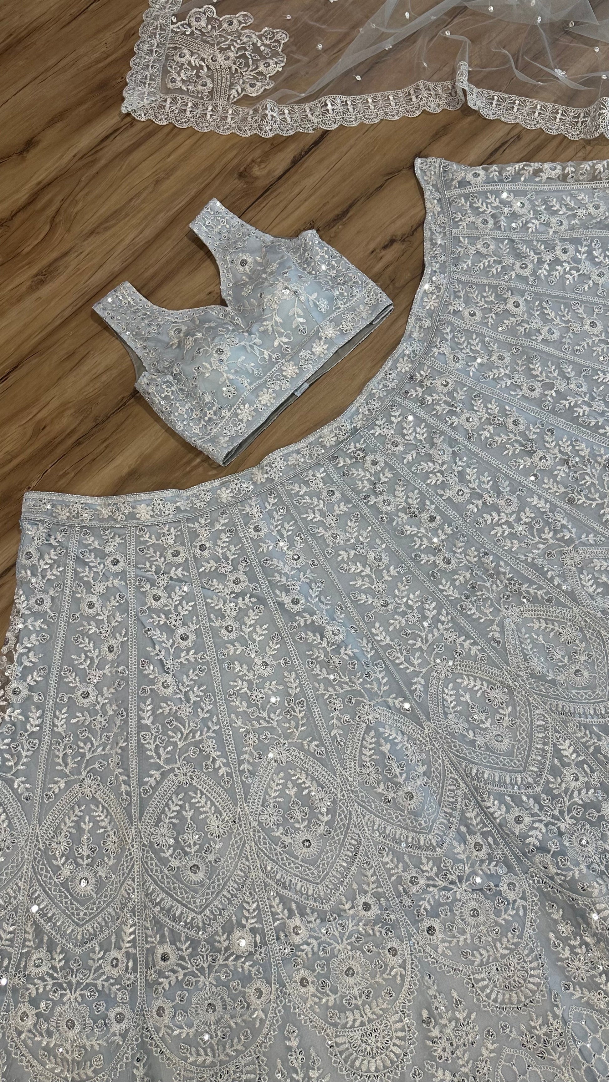 Net lehenga with sequins & thread work