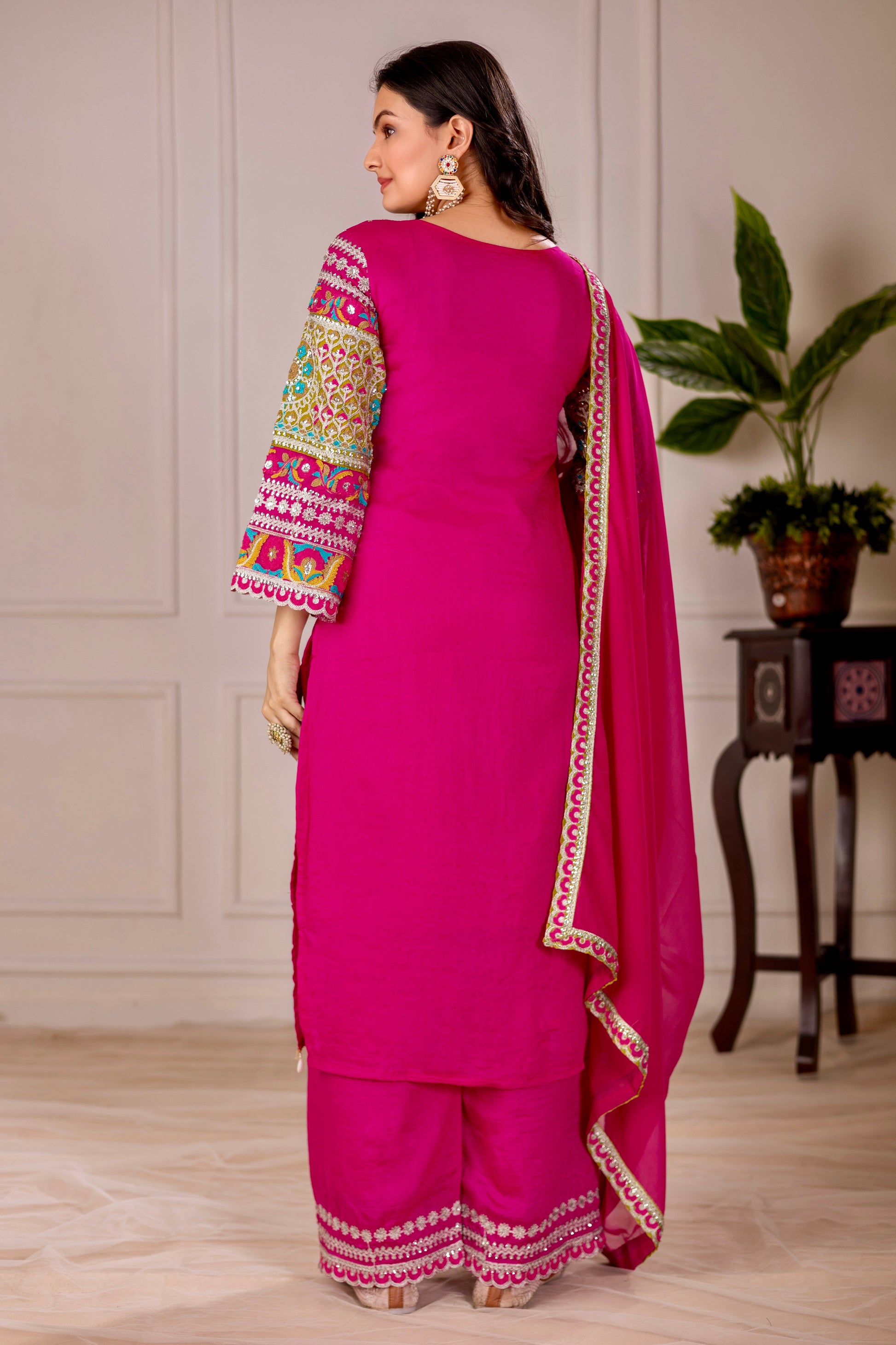 *DESIGNER WEAR VICHITRA SILK EMBROIDERED SEQUENCE WORK SALWAR SUIT SET*