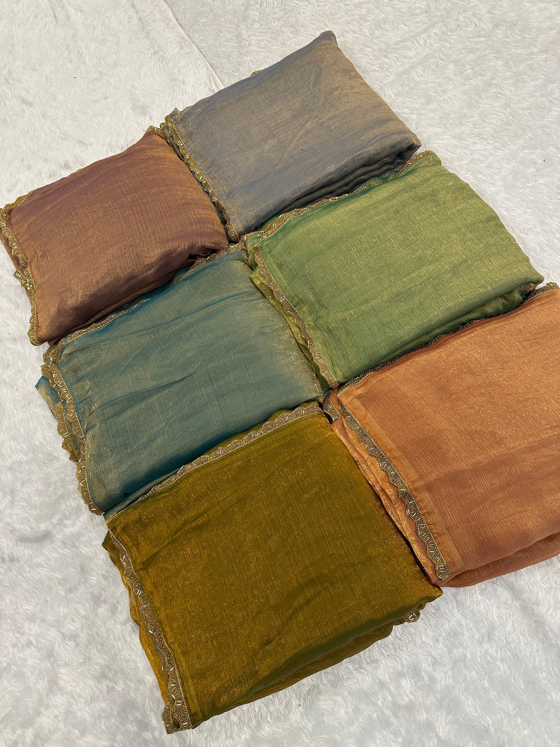 Premium soft fendi silk two tone saree with beads hand Pipe Work