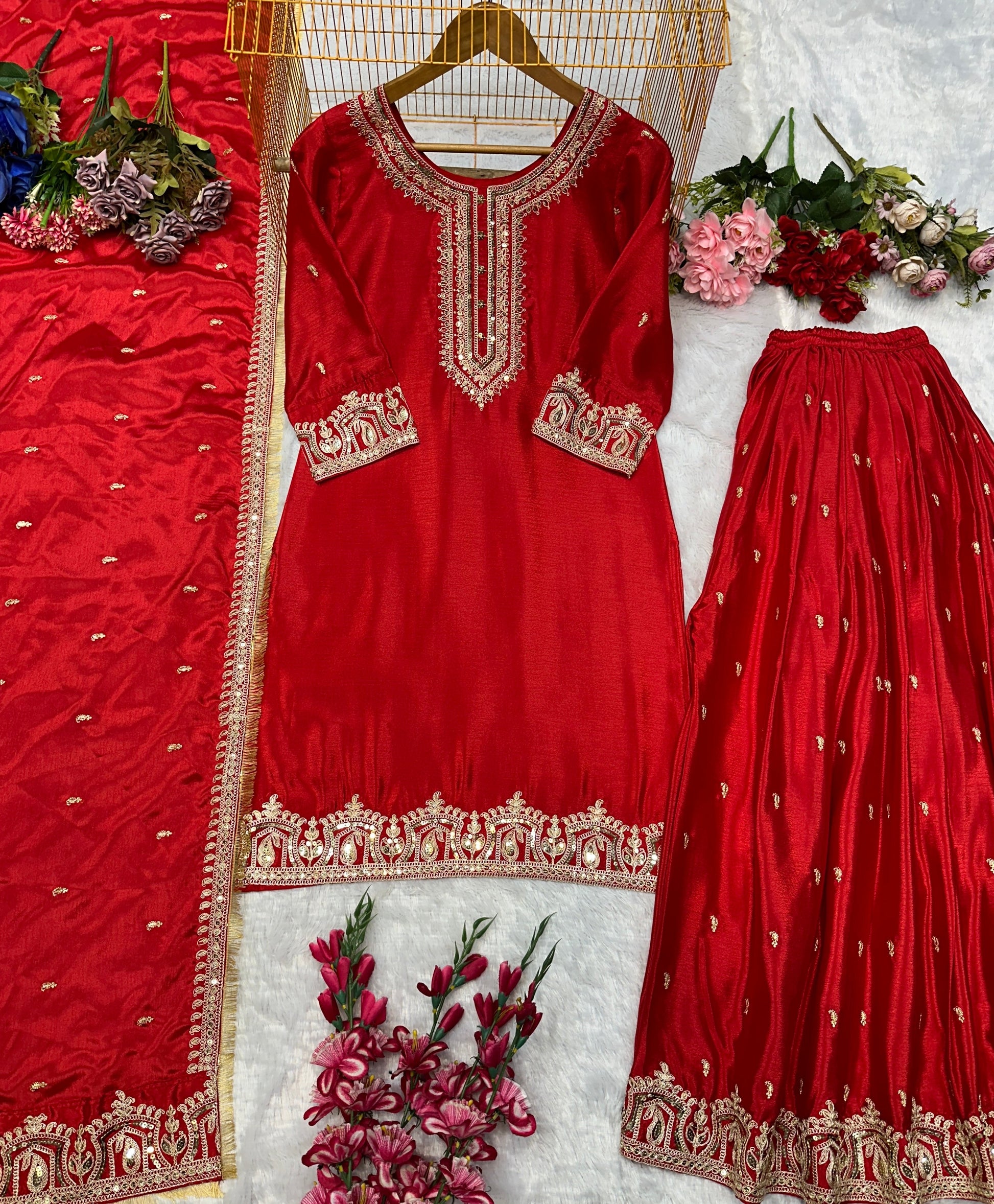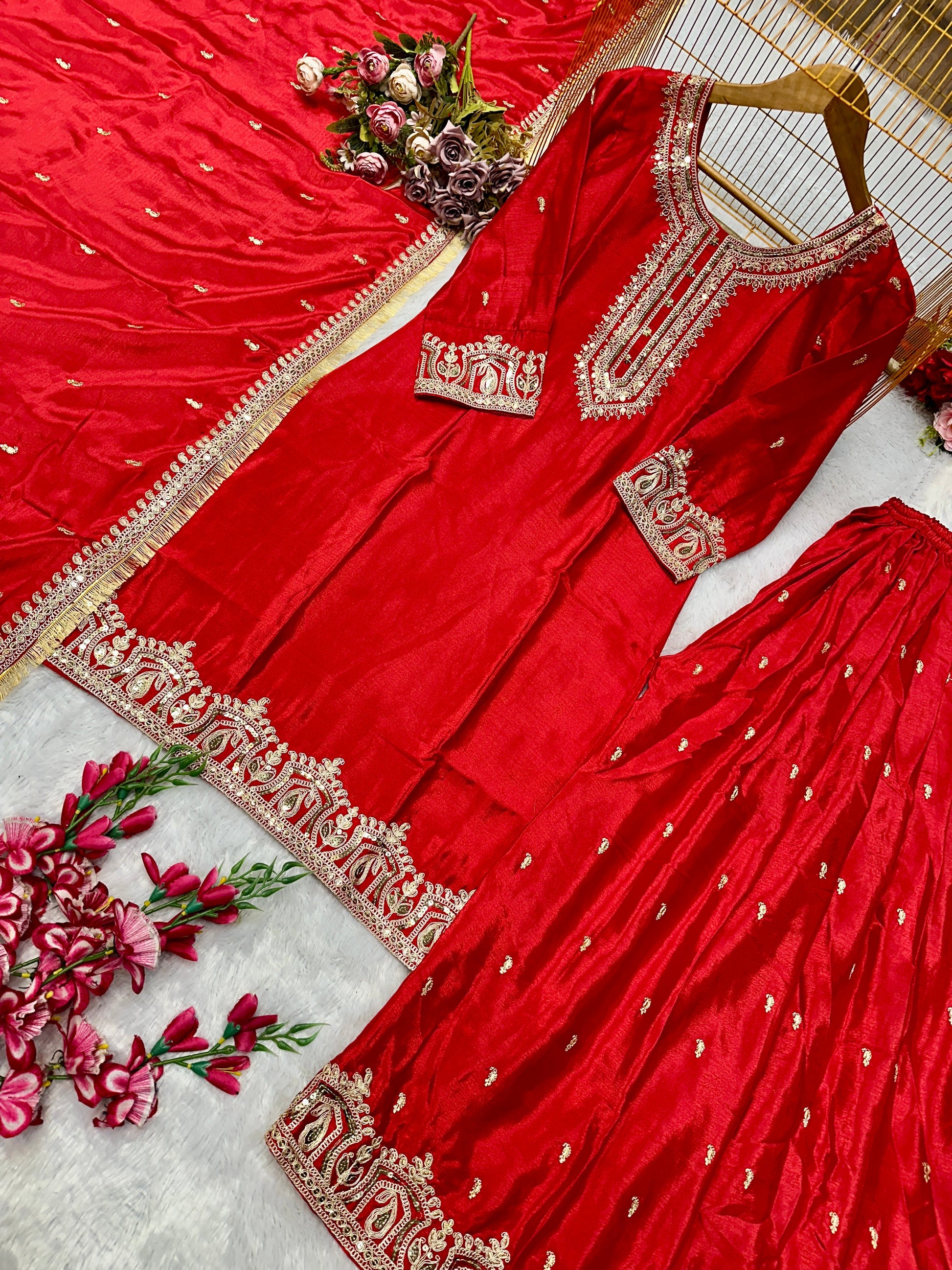*NEW DESIGNER PARTY WEAR TOP AND PLAZZO. WITH FANCY DUPPATA AND EMBROIDERY WORK*