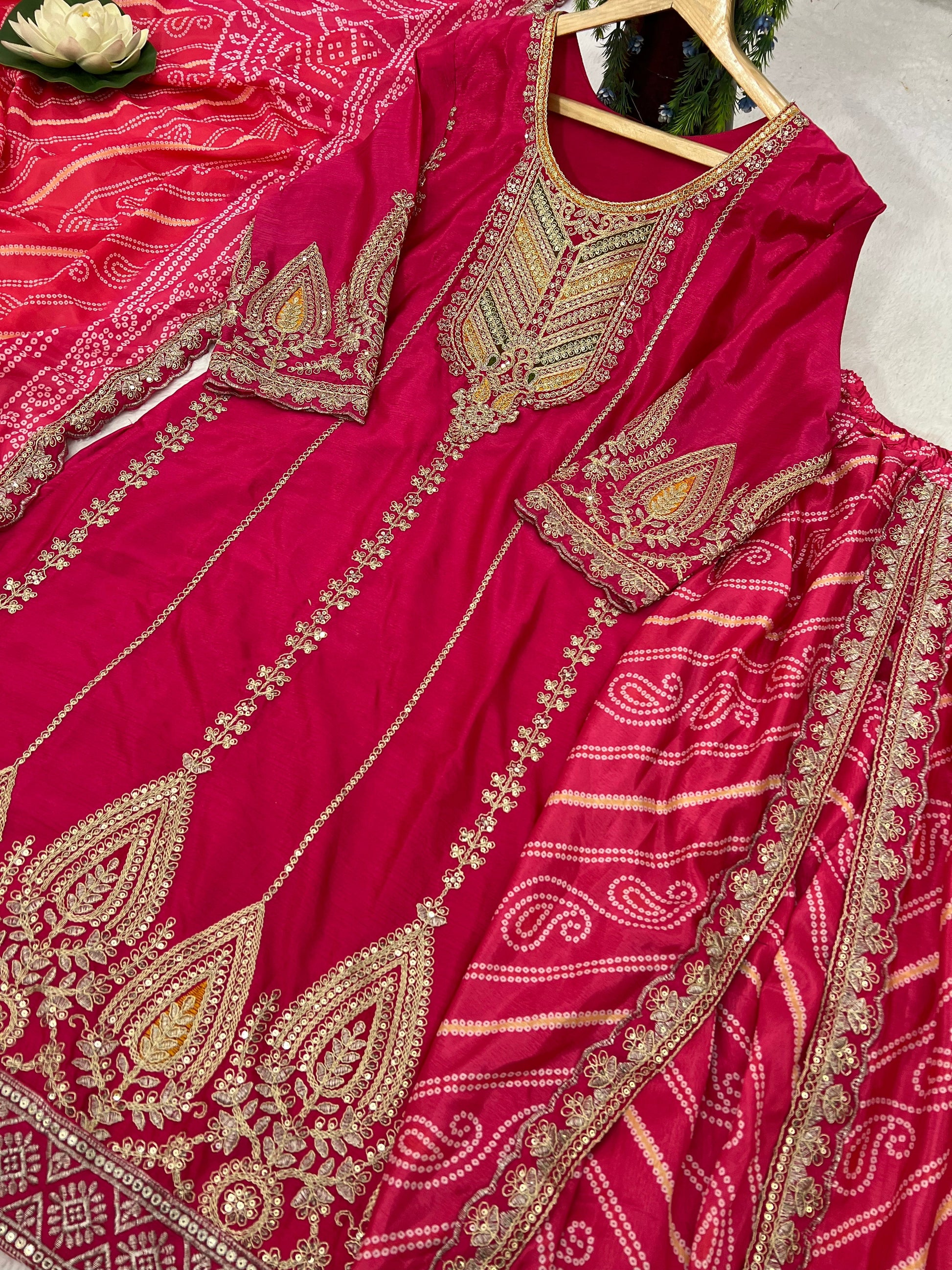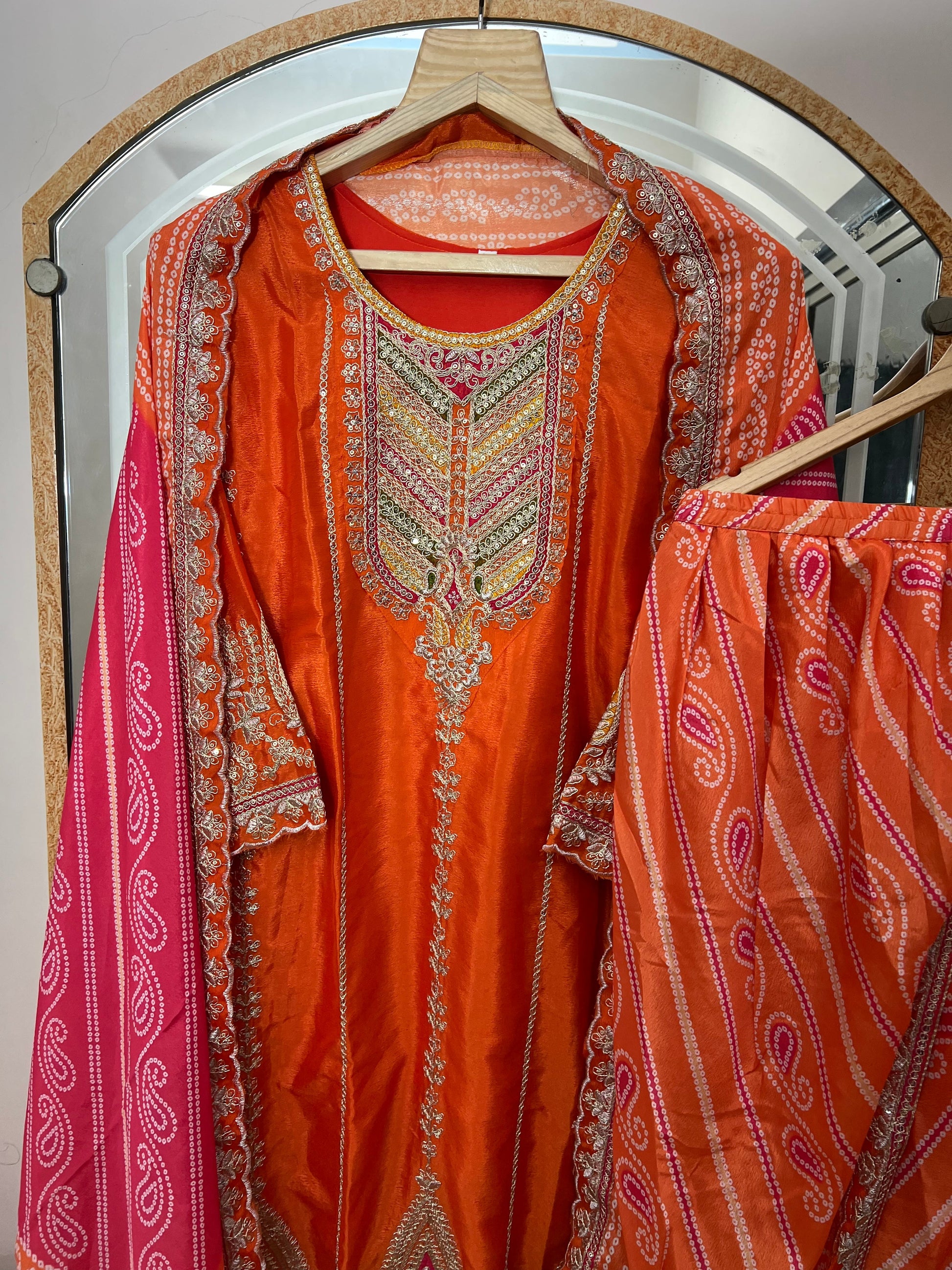 *Dupatta Fabric* :- Heavy Pure Chinon Silk Fabric with digital print with embroidery work Lace on border