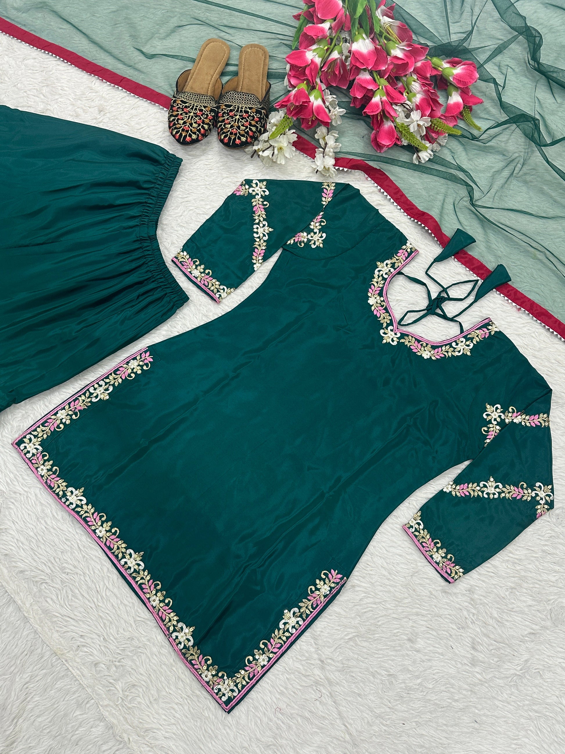 *Top Fabric* :- Natural Crep With Heavy Embroidery Work With Fancy Borders Less Work Sleeve With Fancy Latkan Dori.