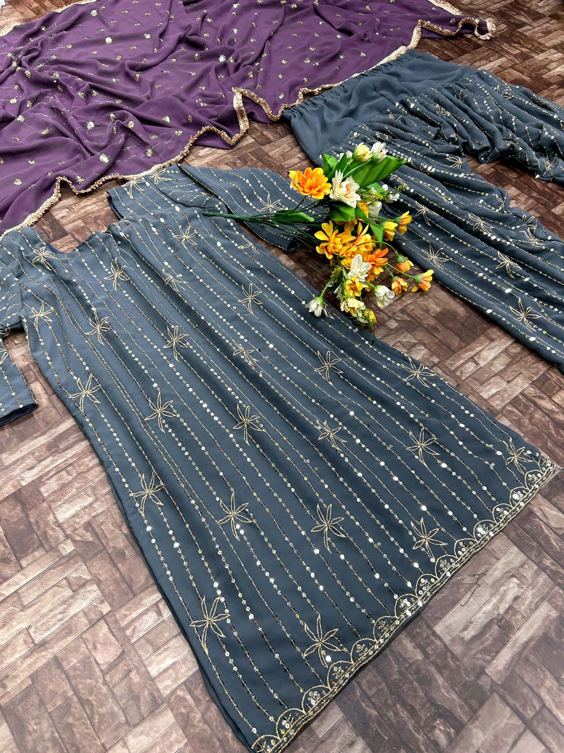 *Dupatta Fabric* :- Heavy Pure Blooming Georgette fabric With Sequence Embroidery Work With Emb. Work Lace Work on Border (dupatta size 2.20 meter)