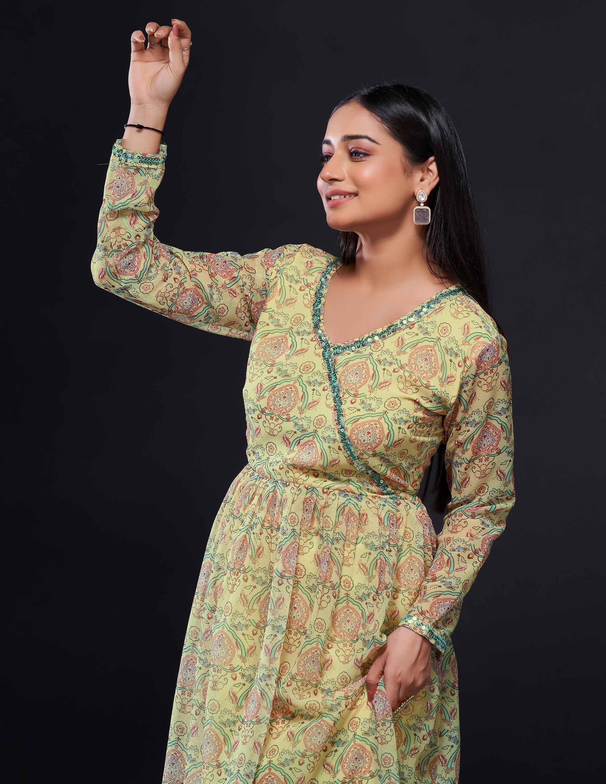 Digital print Georget top with sequence work ( full Stich upto 42 size )