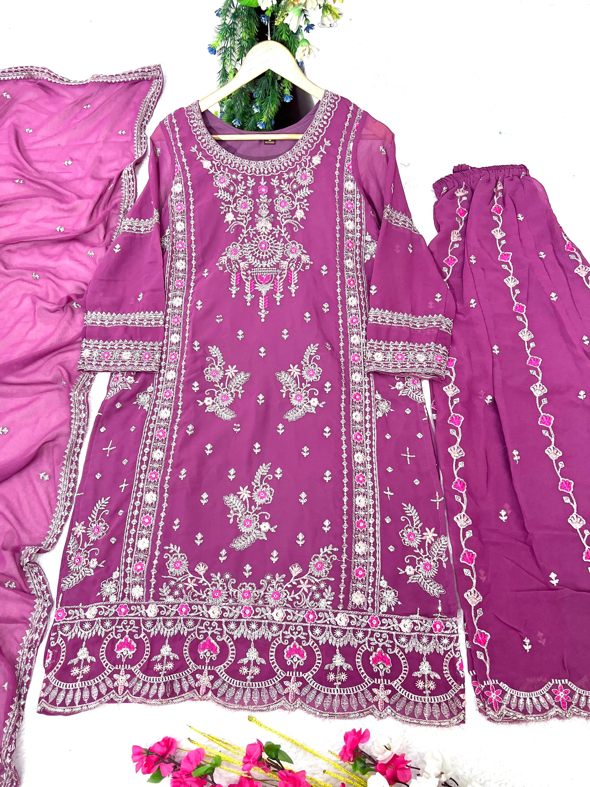 *Plazzo Fabric*:- Heavy Faux Gorgette Silk Fabric Fancy Plazzo (Fully stitched)