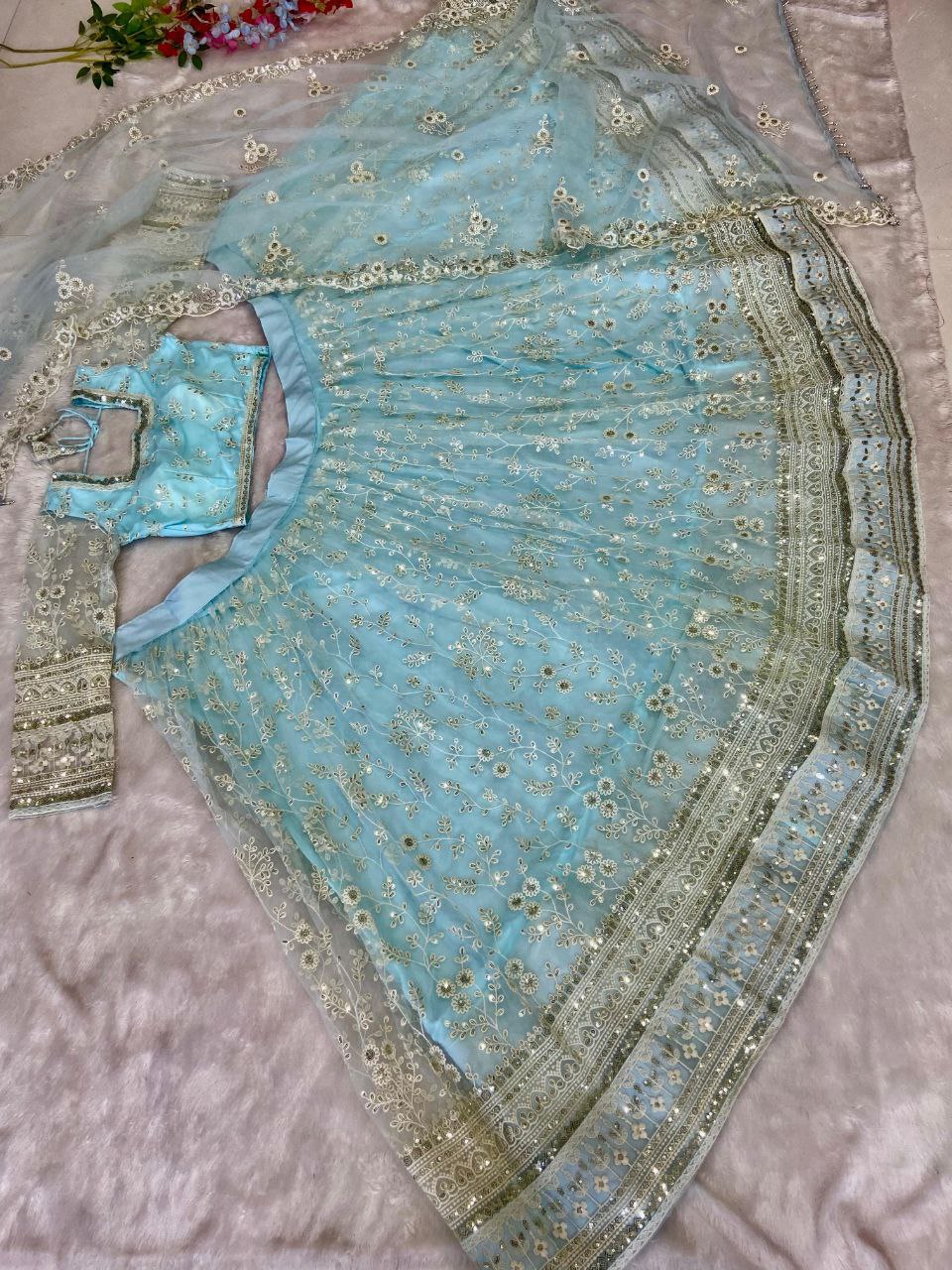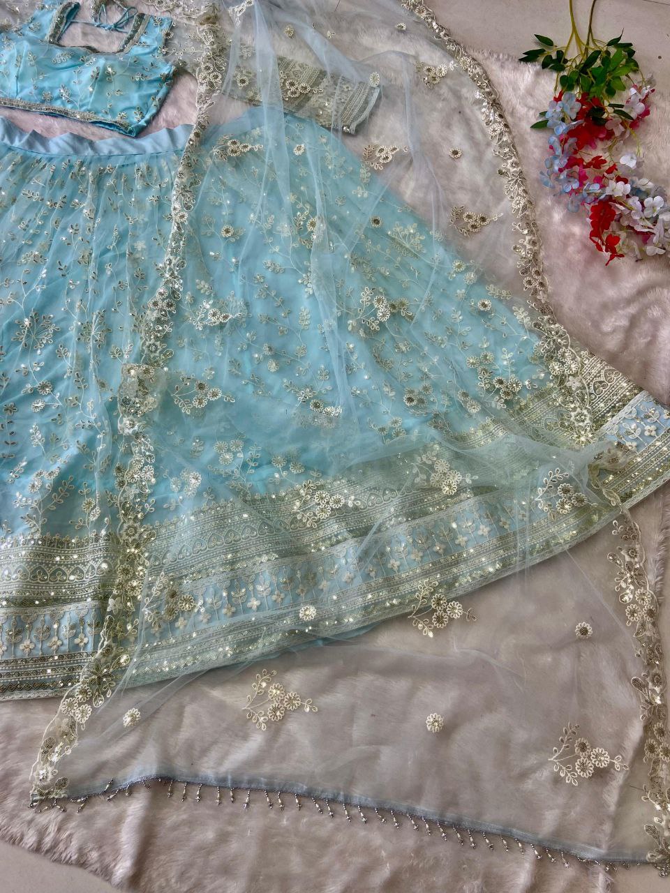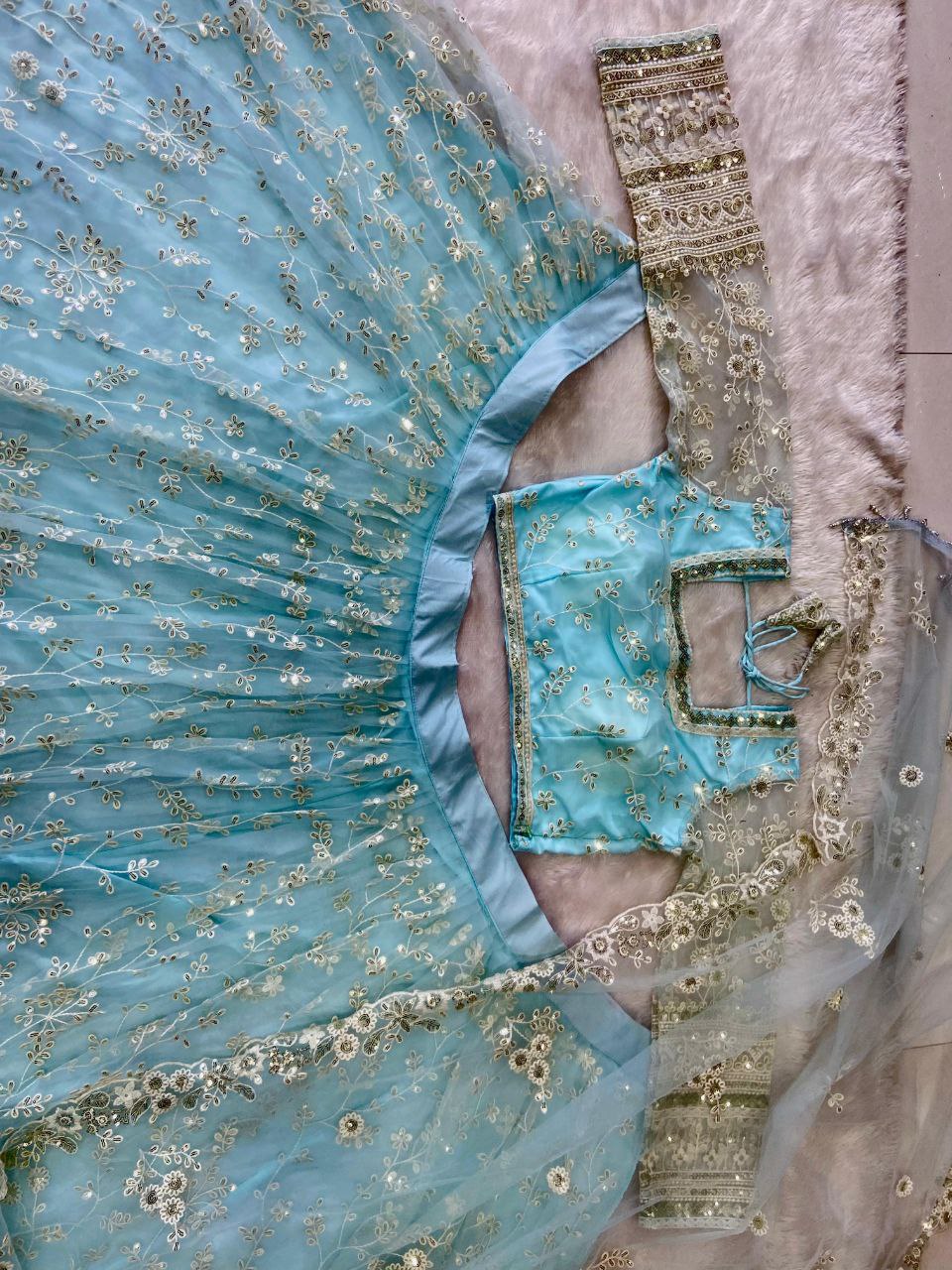 Lehenga : *Premium Net Embellished With Beautiful Cotton Thread Embroidery , And Heavy Sequins Work With Heavy Cancan And Canvas With Double Inner Covering With Flair 3.5 MTR*( Semi Stitched Upto Xxl )