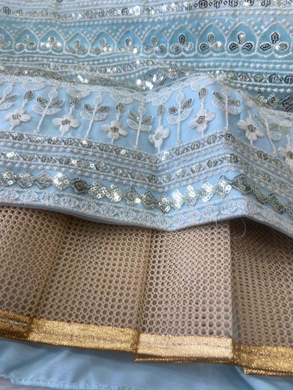 Blouse : *Premium Net Embellished With Beautiful Cotton Thread Embroidery , And Heavy Sequins Work, With Sleeves Work With Fancy Latkan Lace ,Both Side Work Front And Back With Silk Inner For Blouse*( Unstitched )