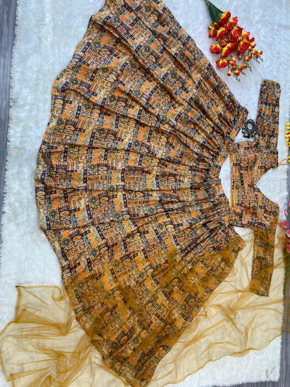 Blouse : *Premium Chinon Silk With Beautiful Digital Print*( Unstitched )