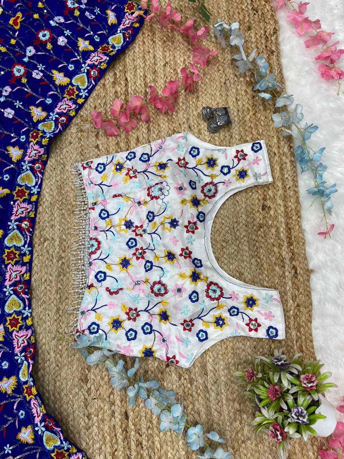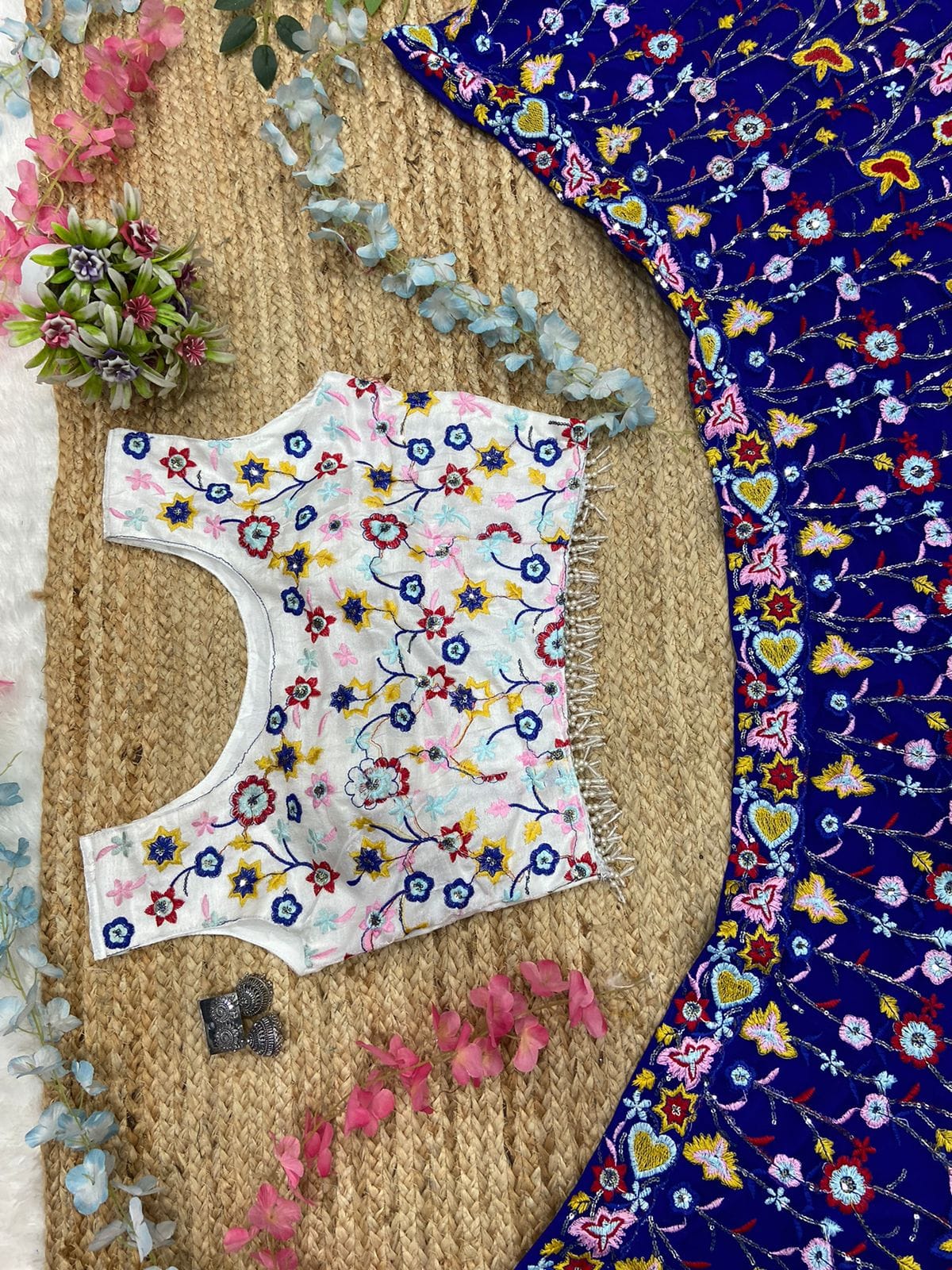 Blouse : *Premium Mono Silk Embellished With Beautiful Multi color Thread Embroidery And Sequins, Work Both Side Work Front And Back With Beautiful Latkan Lace For Front And Back*( Unstitched )