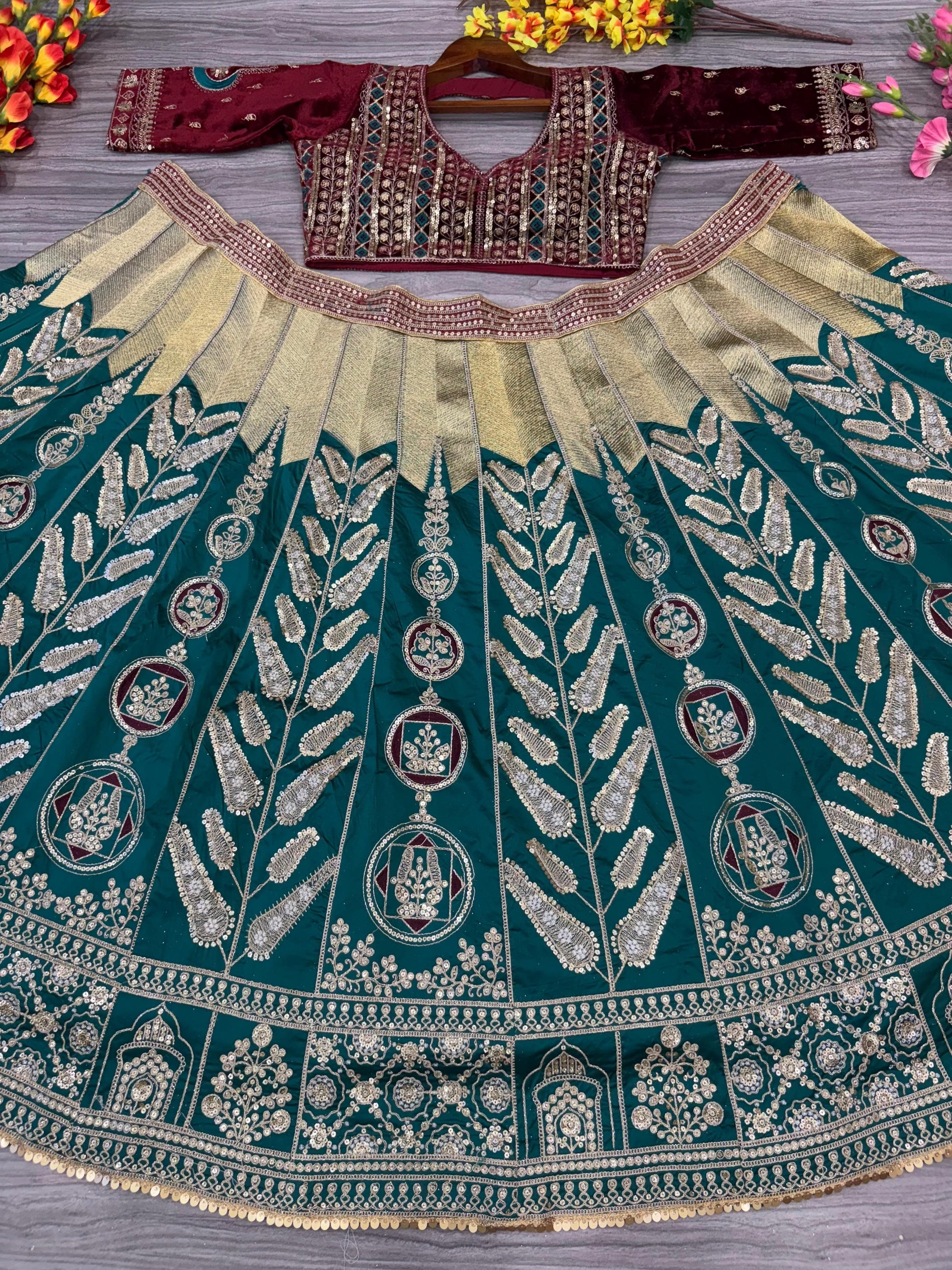 Lehenga : *Premium Mulmul Satin Silkb Embellished With Beautiful Thread, Zari , Dori And Heavy Sequins Work With Heavy Cancan And Canvas With Double Inner Covering With 3.5Mtr Flair*( Semi Stitched. )