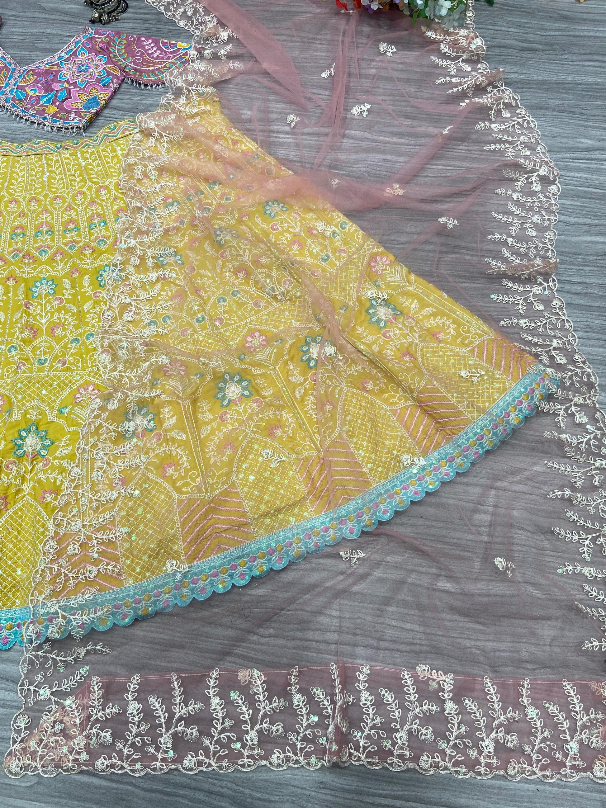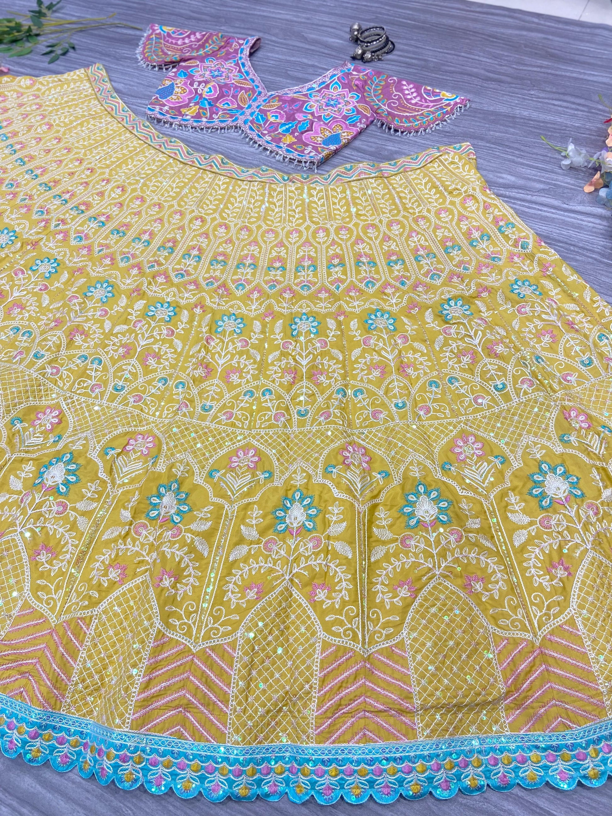 Party Wear Lehenga Choli With Multi Thread Embroidery Work