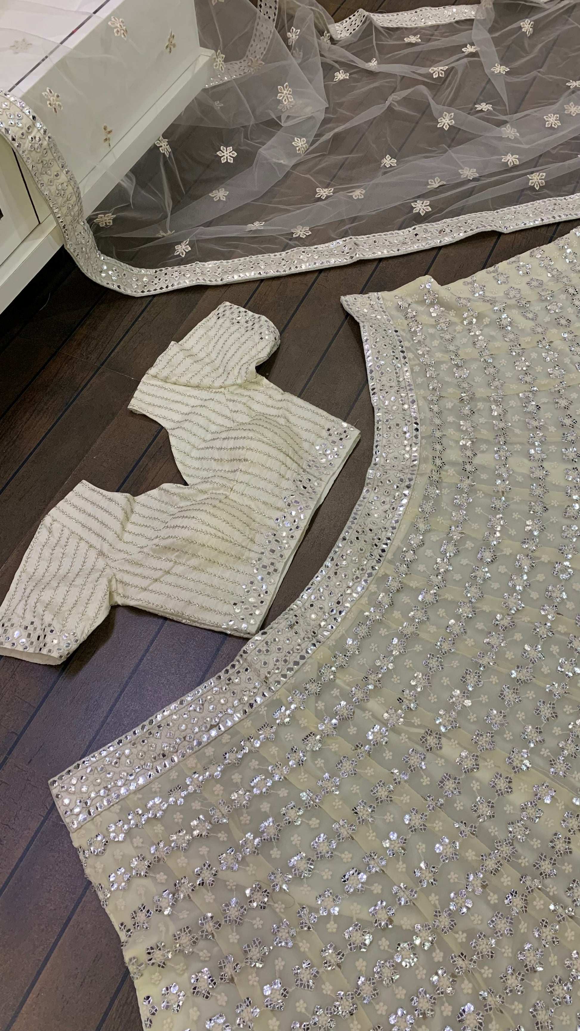 Georgette lehenga with thread & paper mirror work with 3.25 meter flair