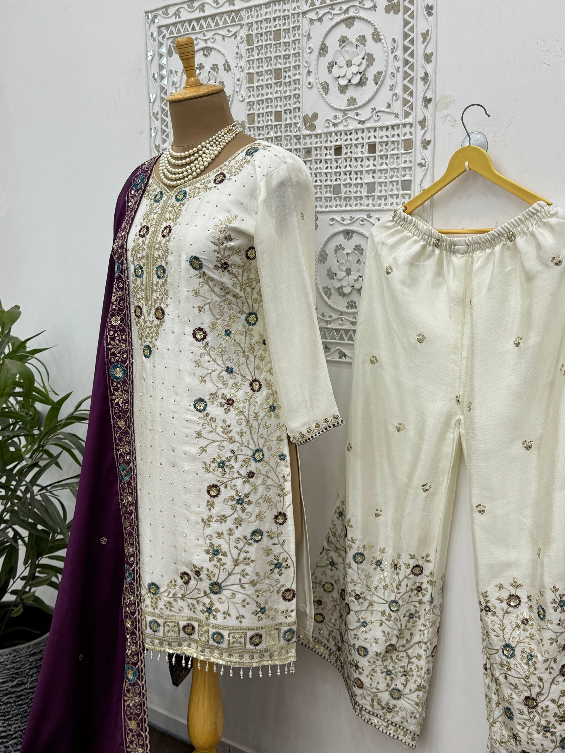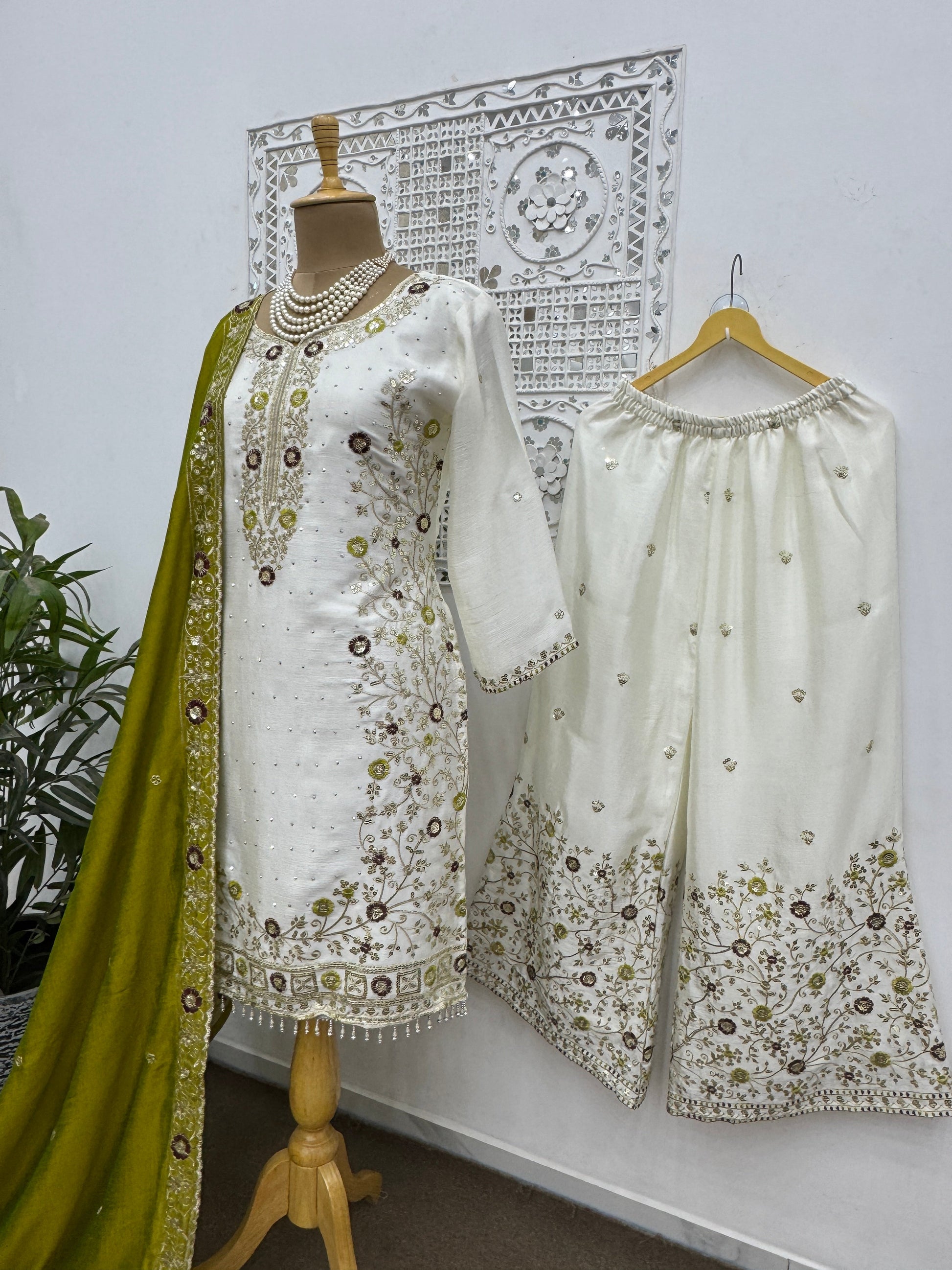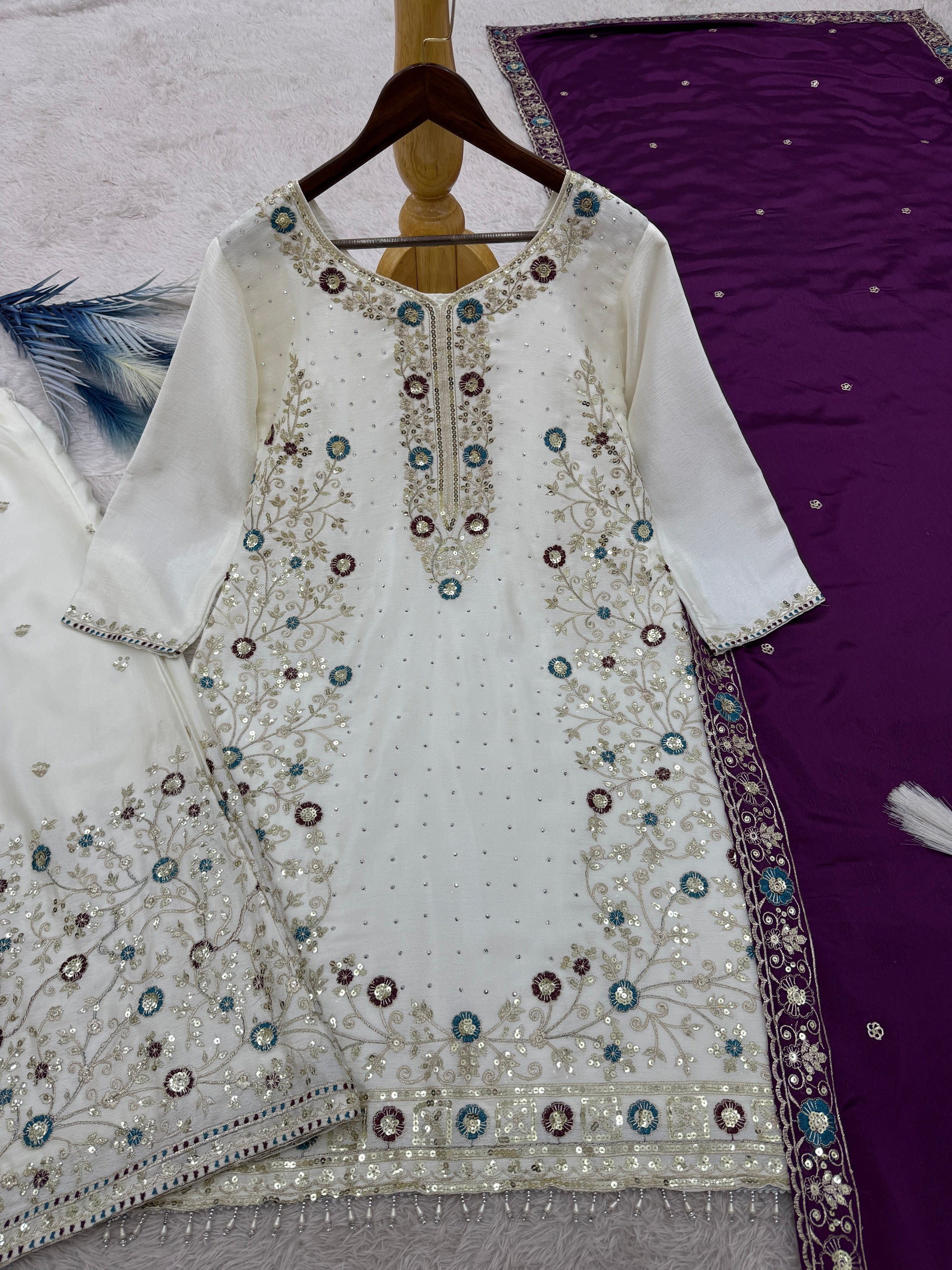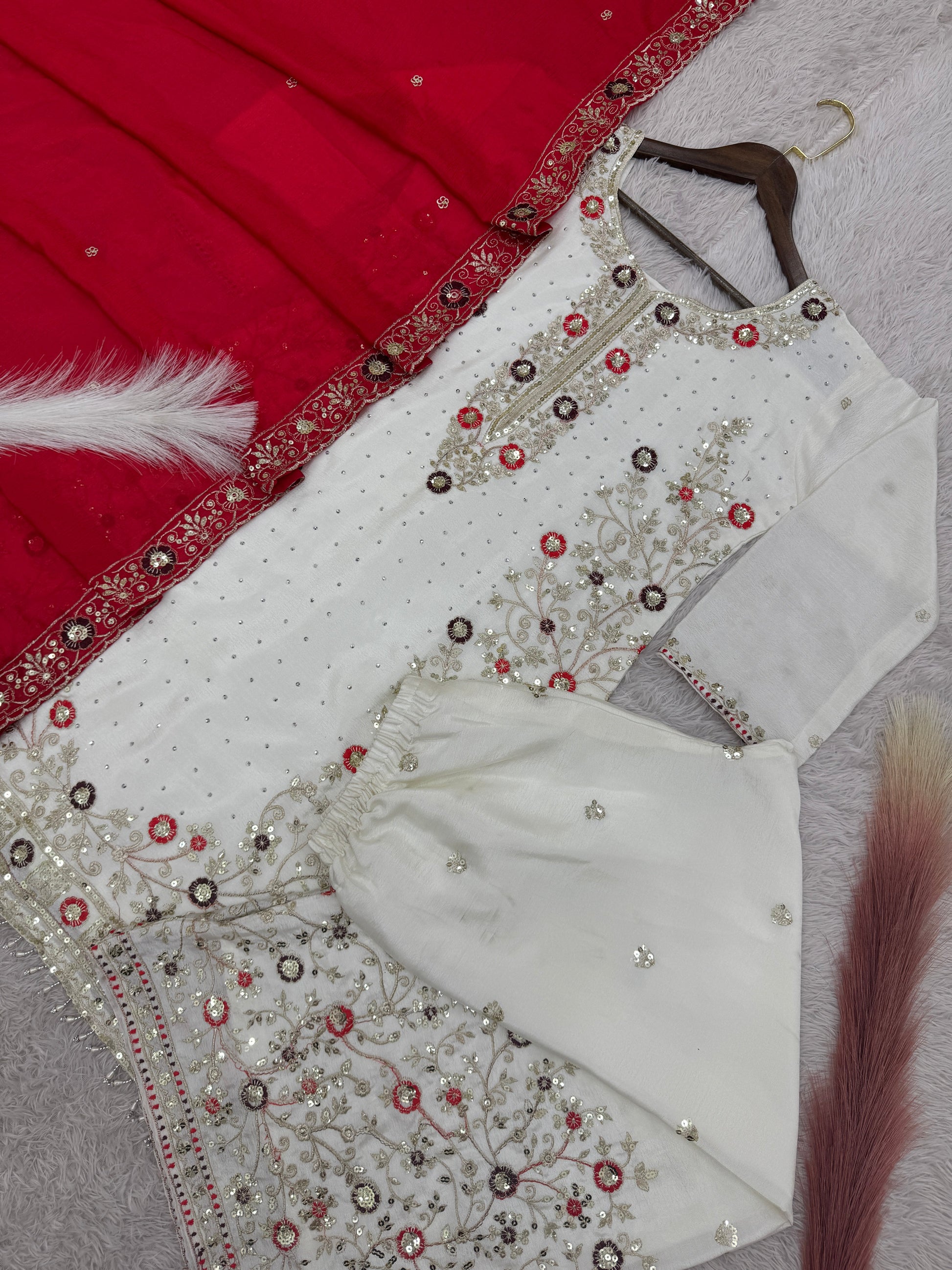 PRESERNTING NEW PAKISTANI READY TO WEAR COLLECTION WITH EMBROIDERY SEQUENSE WORK TOP-PLAZZO WITH DUPATTA *