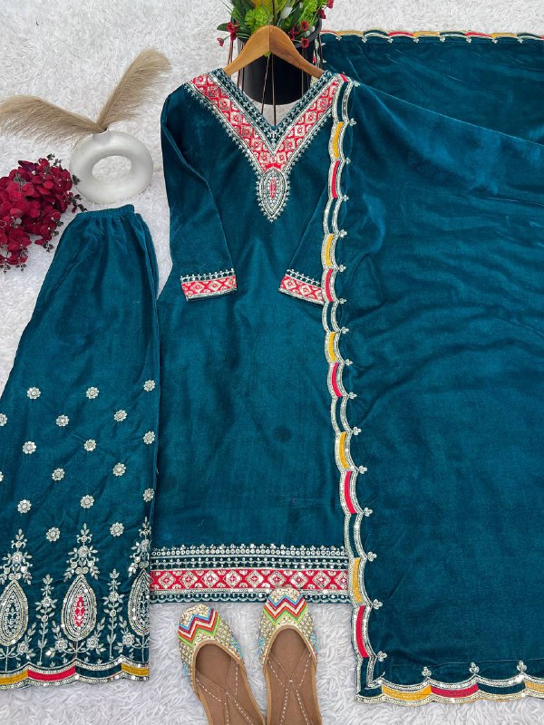 *Top Fabric* :Heavy Viscose Velvet With *Heavy Embroidery Sequence Work* With Full Sleeves