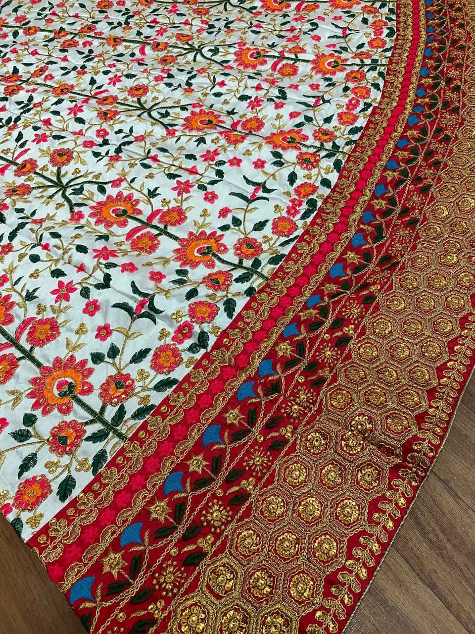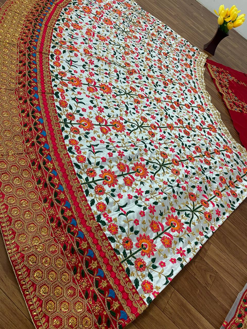 White and maroon Embroidered Attractive Party Wear Silk Lehenga choli has a Regular-fit and is Made From High-Grade Fabrics And Yarn.