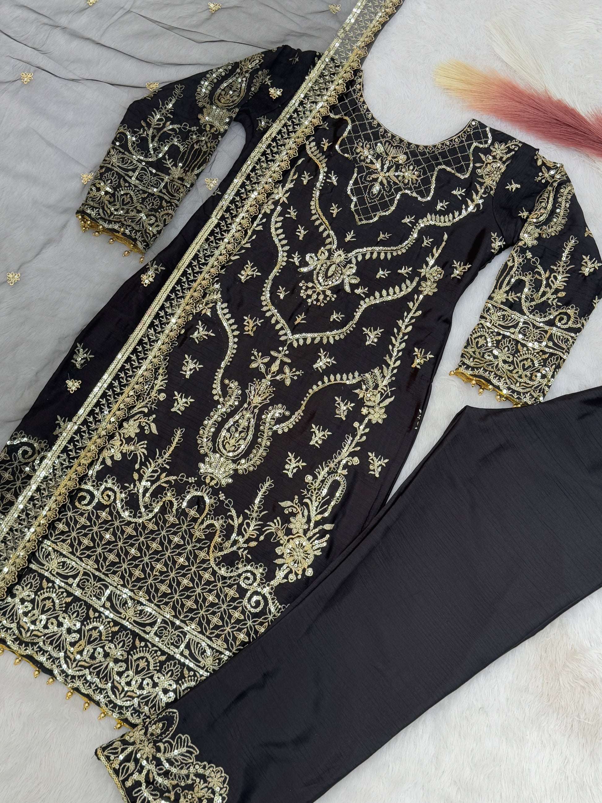 PRESERNTING NEW EID COLLECTION WITH EMBROIDERY SEQUENSE WORK CHINON TOP-PENT WITH DUPATTA *