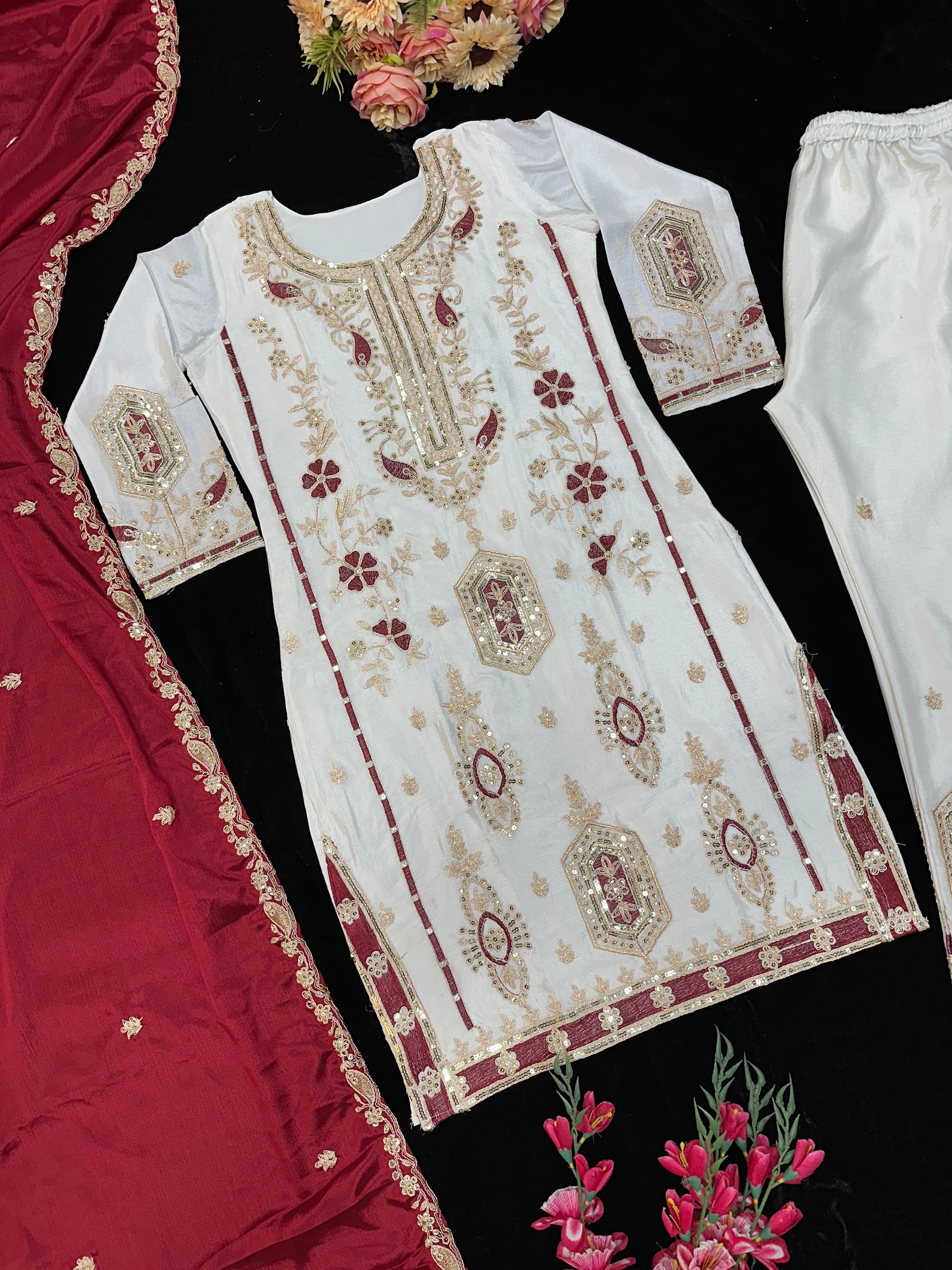Party Wear Top Bottom And Dupatta With Heavy Embroidery Work