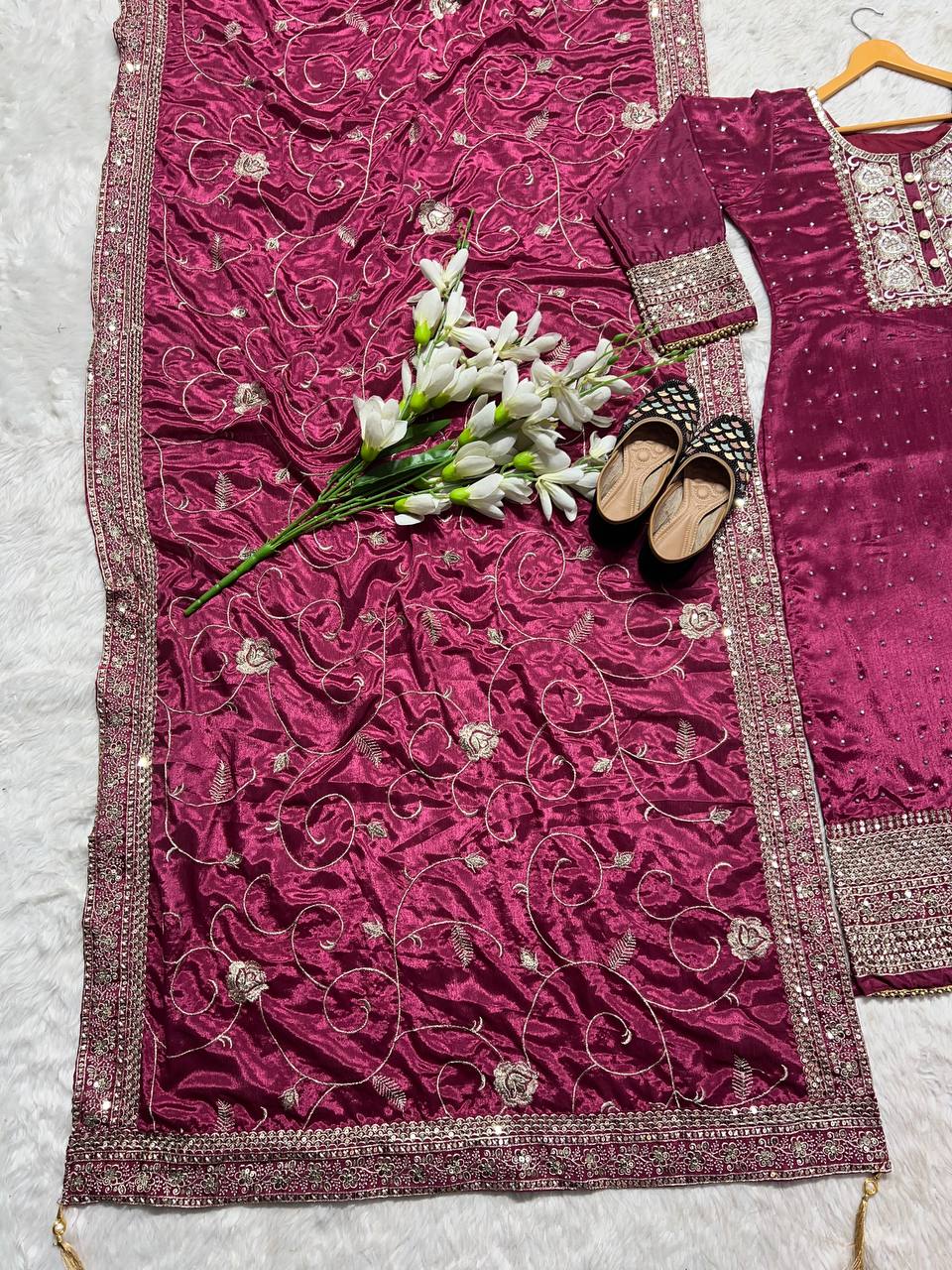 *Pant Fabric* :- Hevay Pure Chinon Silk With Heavy Embroidery 5mm Sequence Work