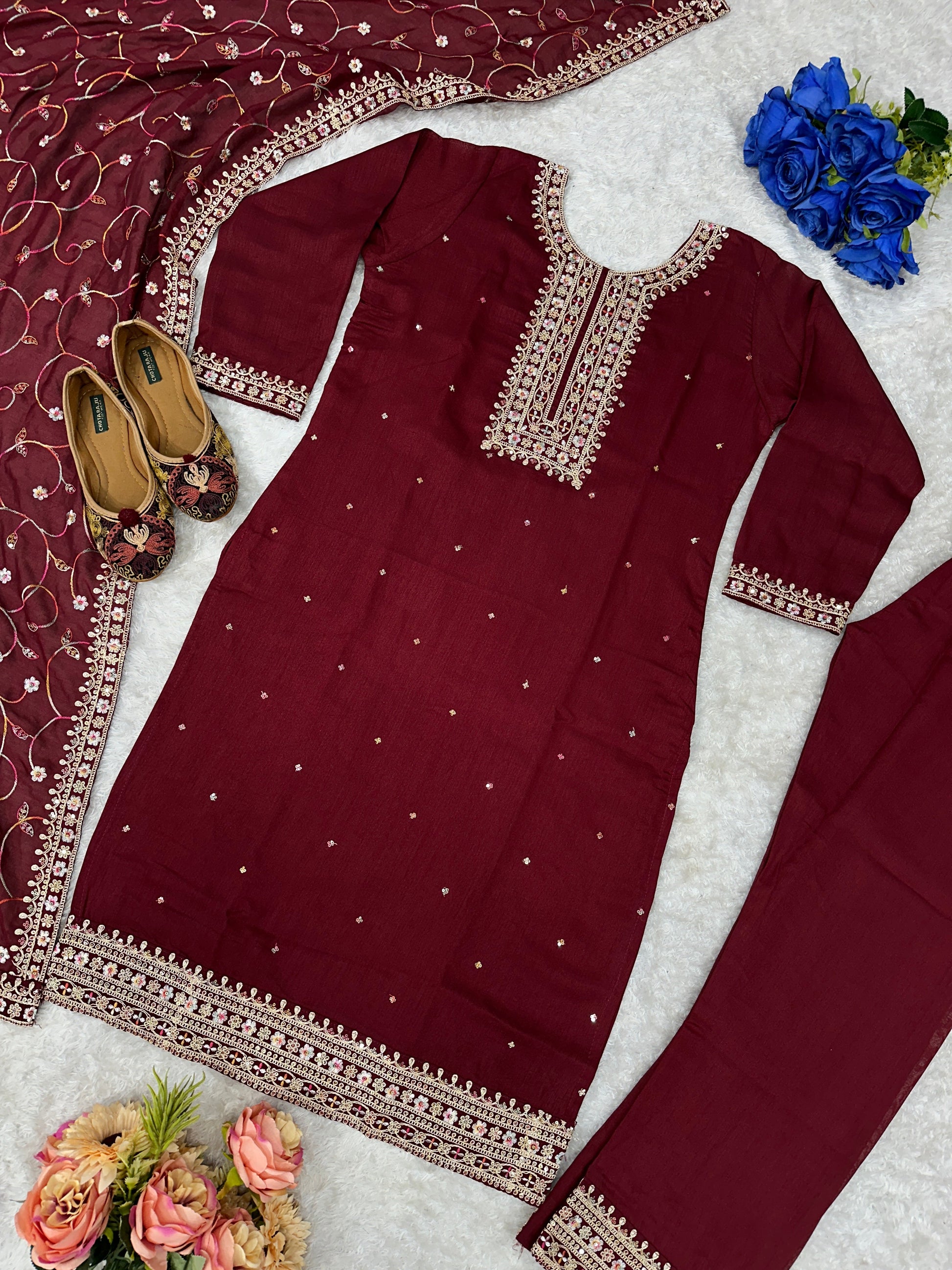 Party Wear Top Plazzo And Dupatta With Embroidery Work