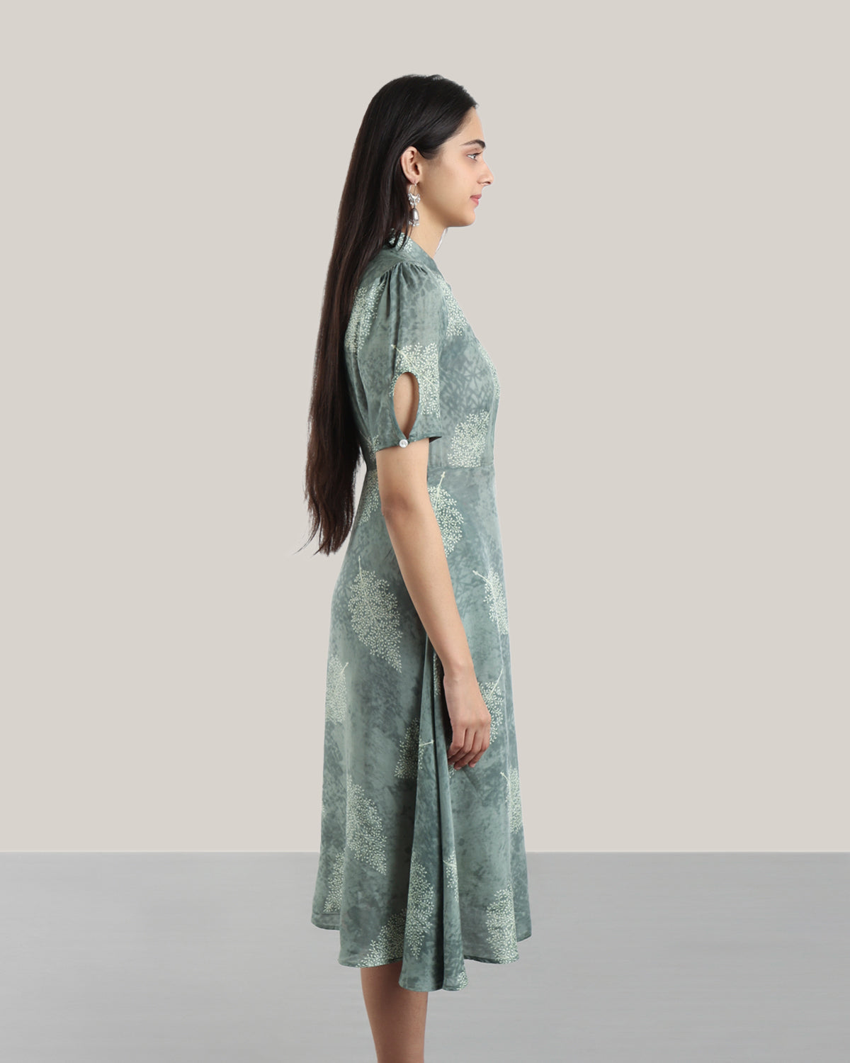 Floral printed harlequin dress with a beautiful mandarin collar with neck pleat detail in Modal, inspired by Kate Middleton's fit and flare style that hits on the knee.