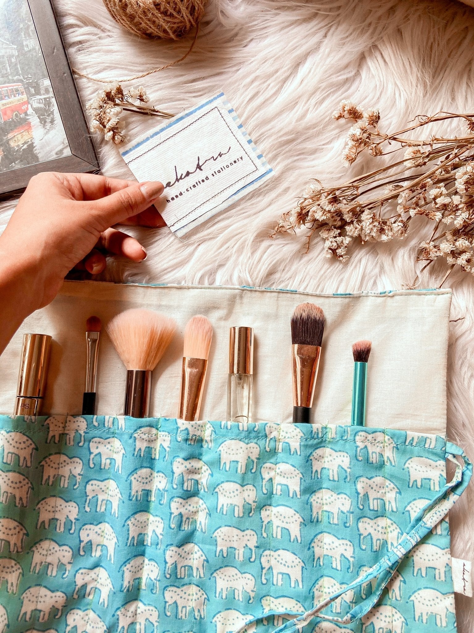 Whether you’re in need of a storage solution for your daily life, for travel or you’re looking for a gift for your favorite makeup hoarder or artist, this brush rolls might be something you need to investigate. And there’s nowhere better to start the search than Ekatra's Handstitched Fabric Roll Up Cases, perfect for travelling, gifting and everything in between.