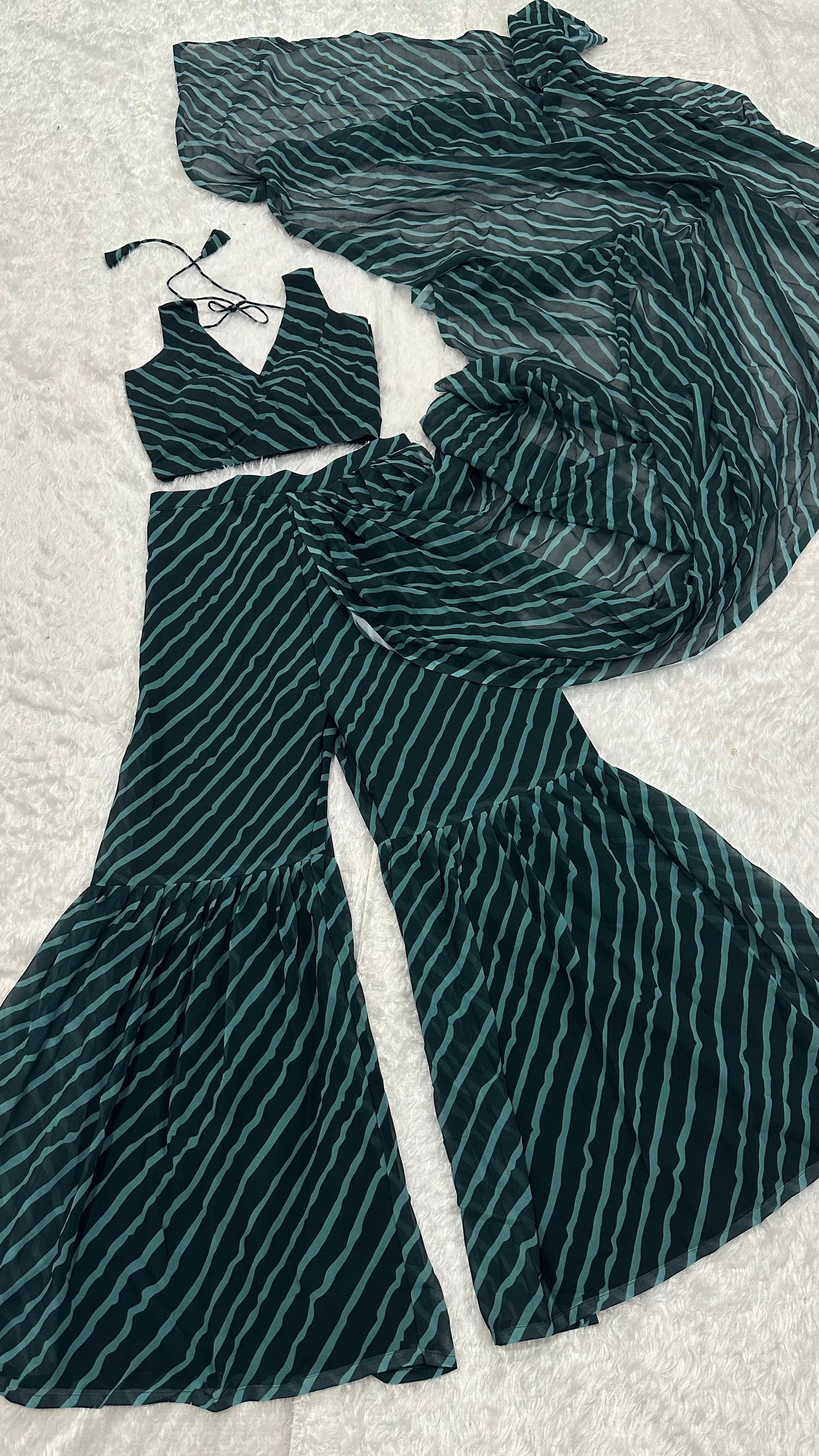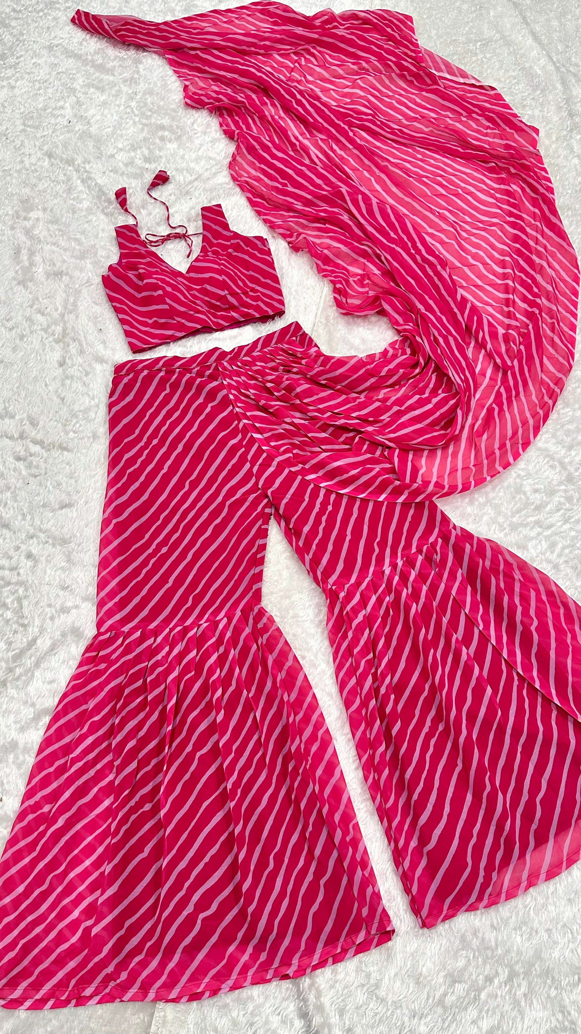 Stylish Party Wear Sharara Saree With Beautiful Leheriya Print