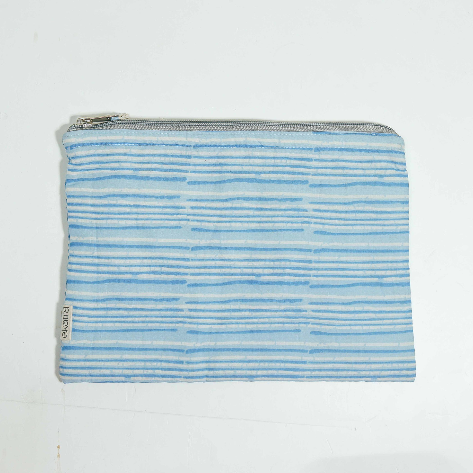 Enjoy your travels with grace and style using the Sustainable Cotton Travel Pouch/Organizer by Ekatra. The organic cotton fabric is luxuriously lightweight yet sturdy, perfect for keeping your belongings safe and secure during long journeys. Its distinct Indigo Stripes design is sure to make an impression wherever it goes.