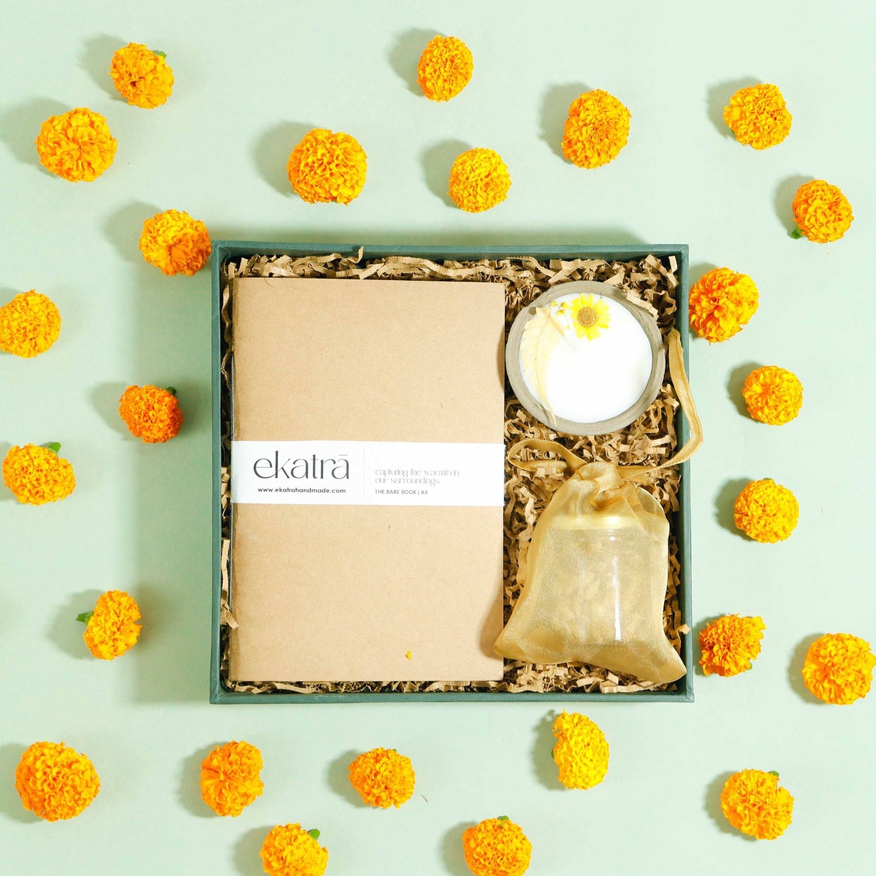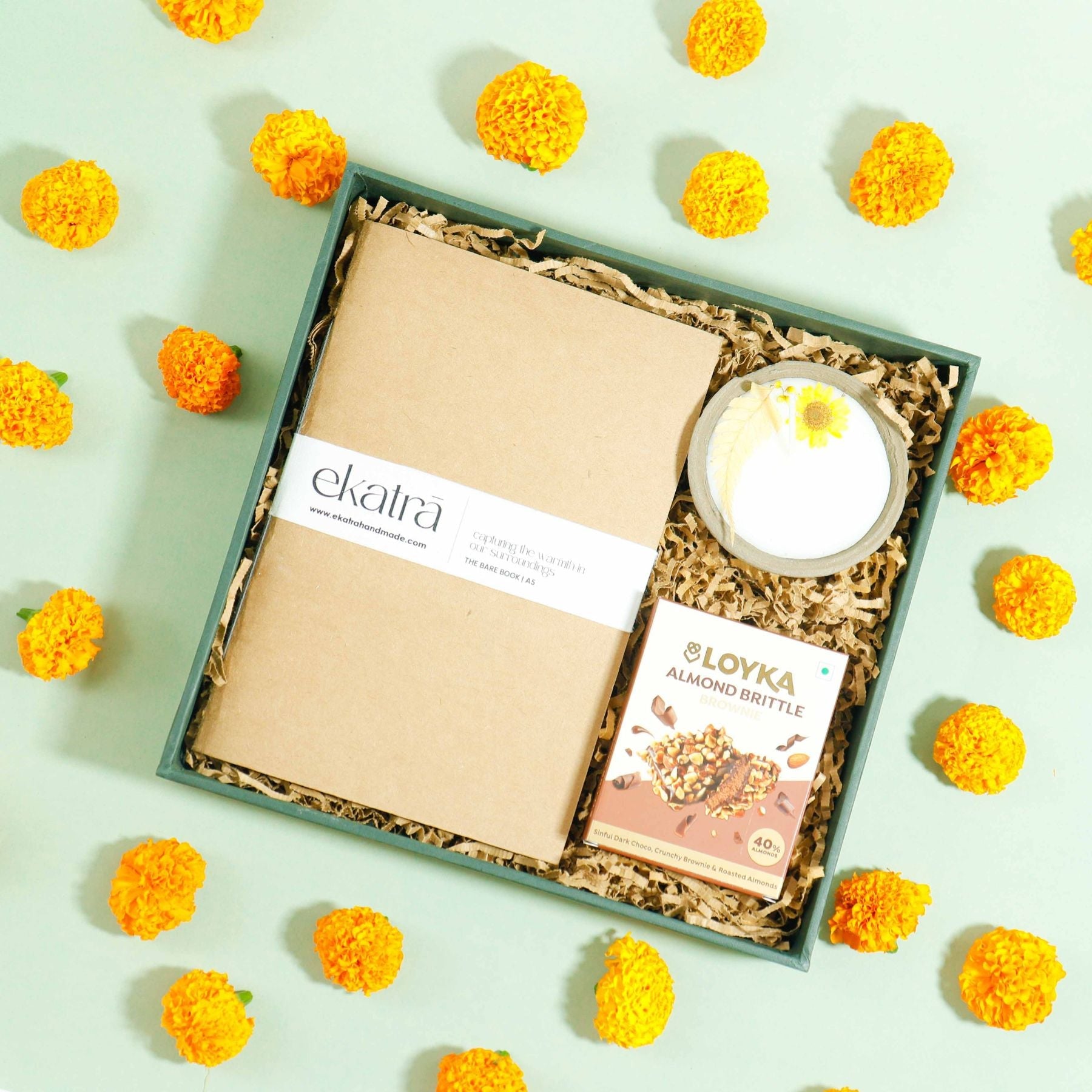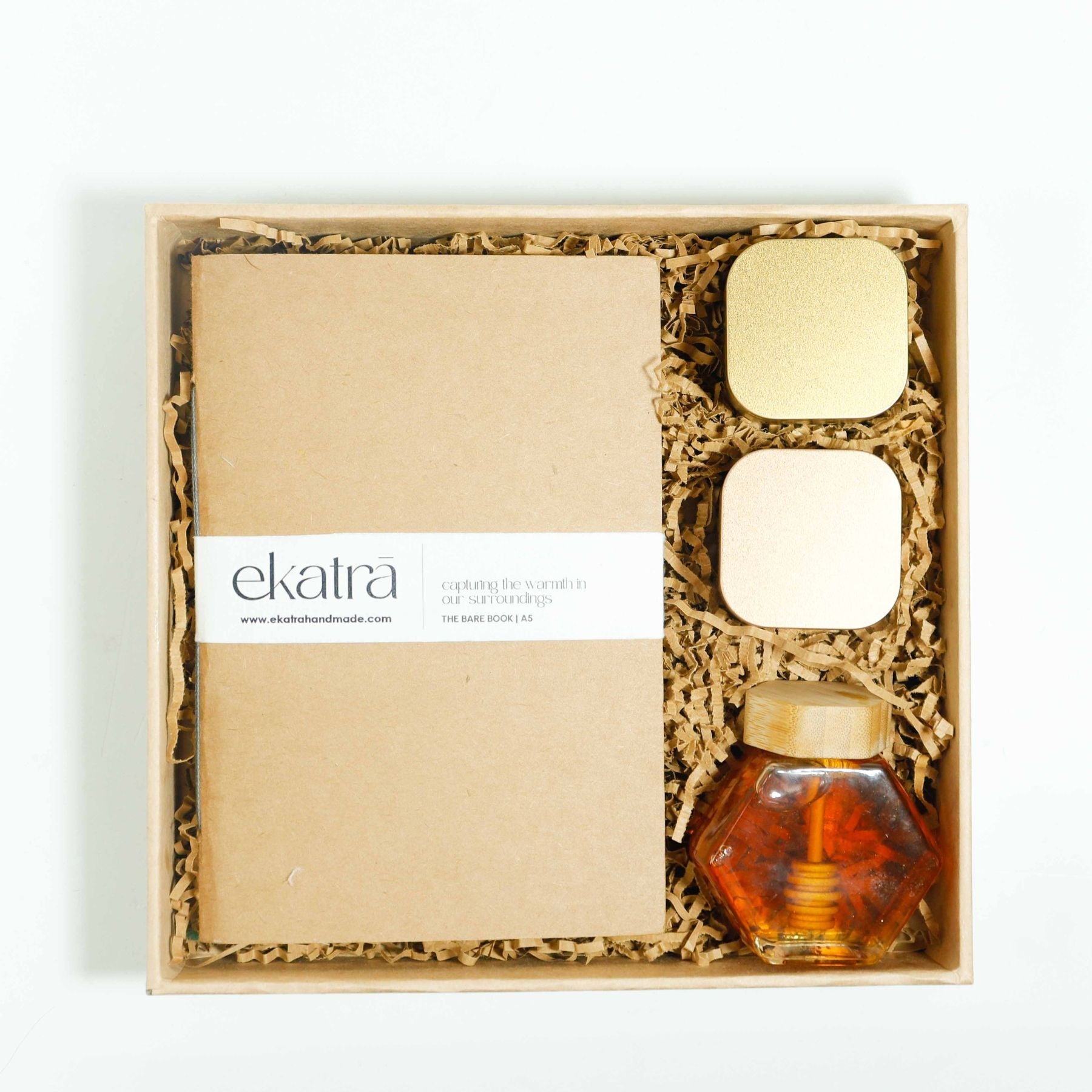 The Earth Edit is a series of three hampers, each one made with a different mix of everyday things. You’ll find journals, candles, tea, coffee, honey, and dry fruits spread across the three edits. All hampers are simple, practical, and made to be gifted or used by you at home.