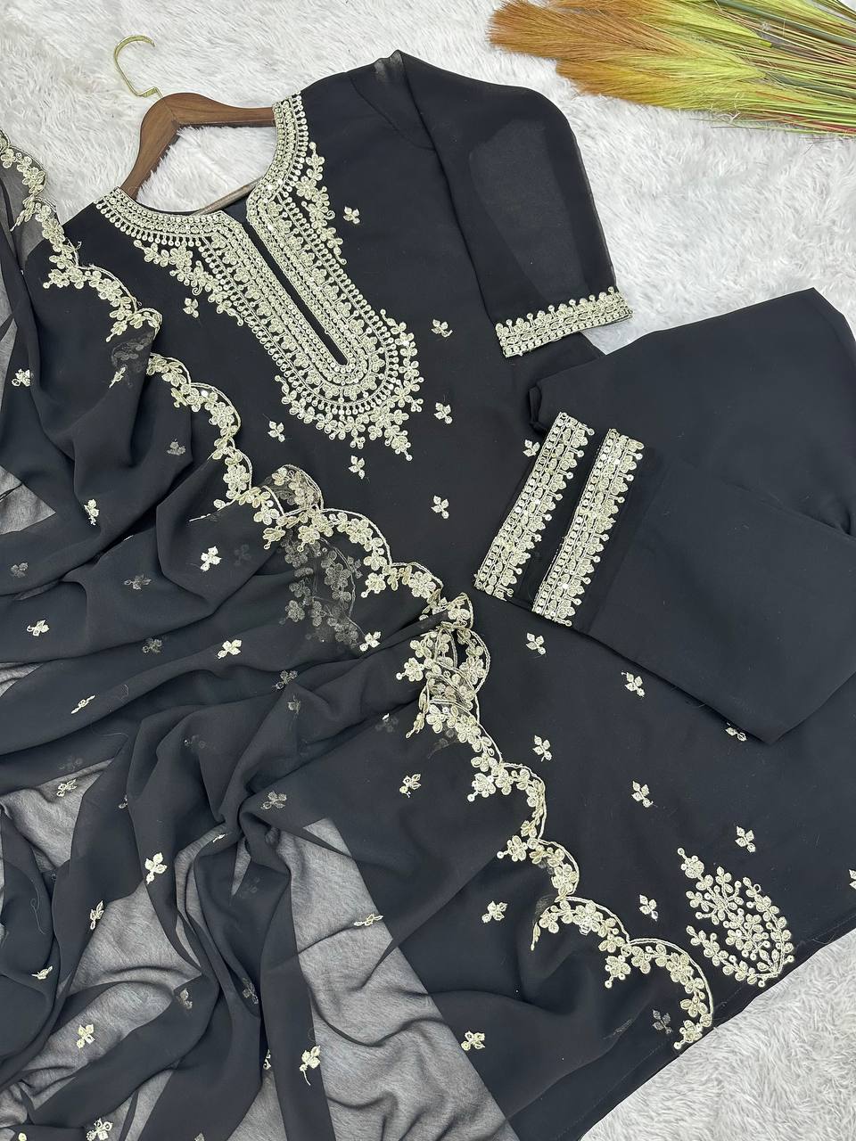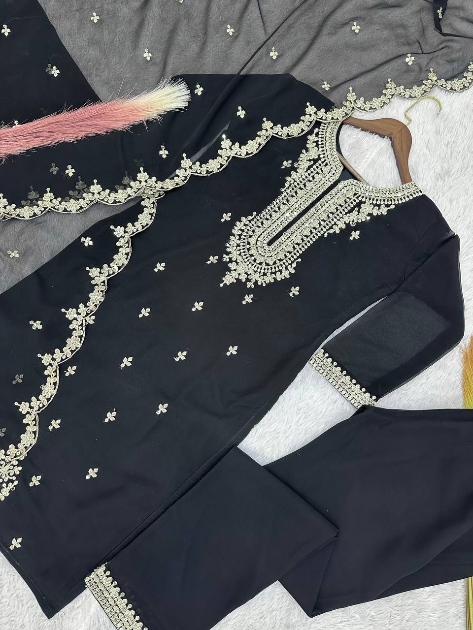 *Presenting New Premium Quality With Embroidery Coding Dori-Sequence Worked Top-Bottom And Dupatta Set Fully Stitched Ready To Wear
