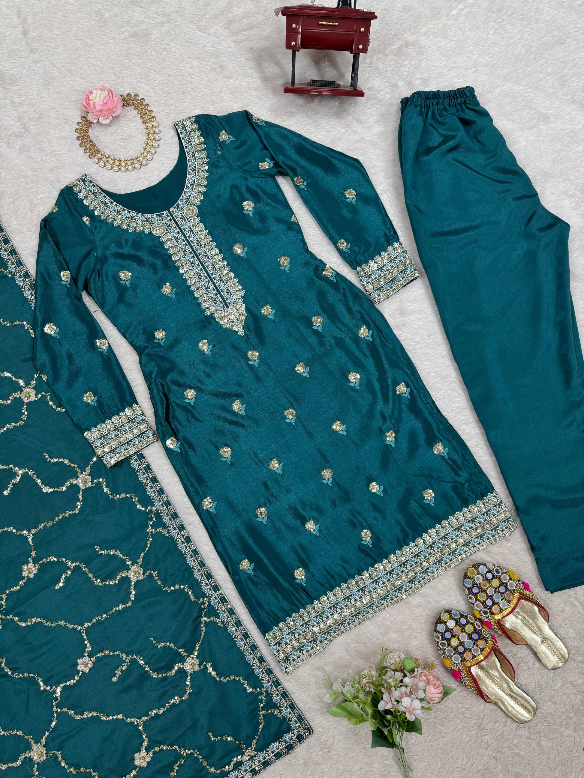 Trending Beautiful Top Pent And Dupatta With Thread With Sequence Work