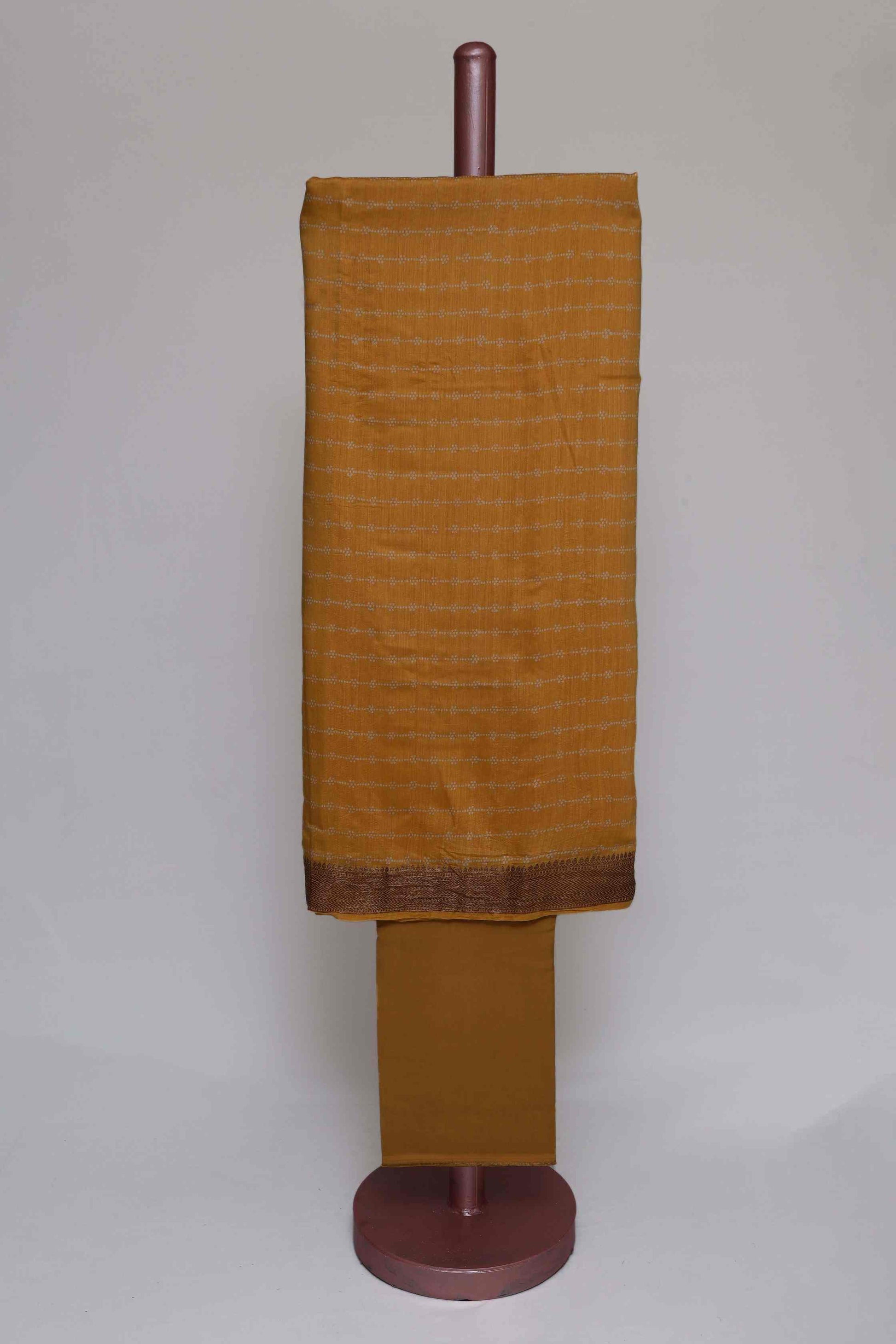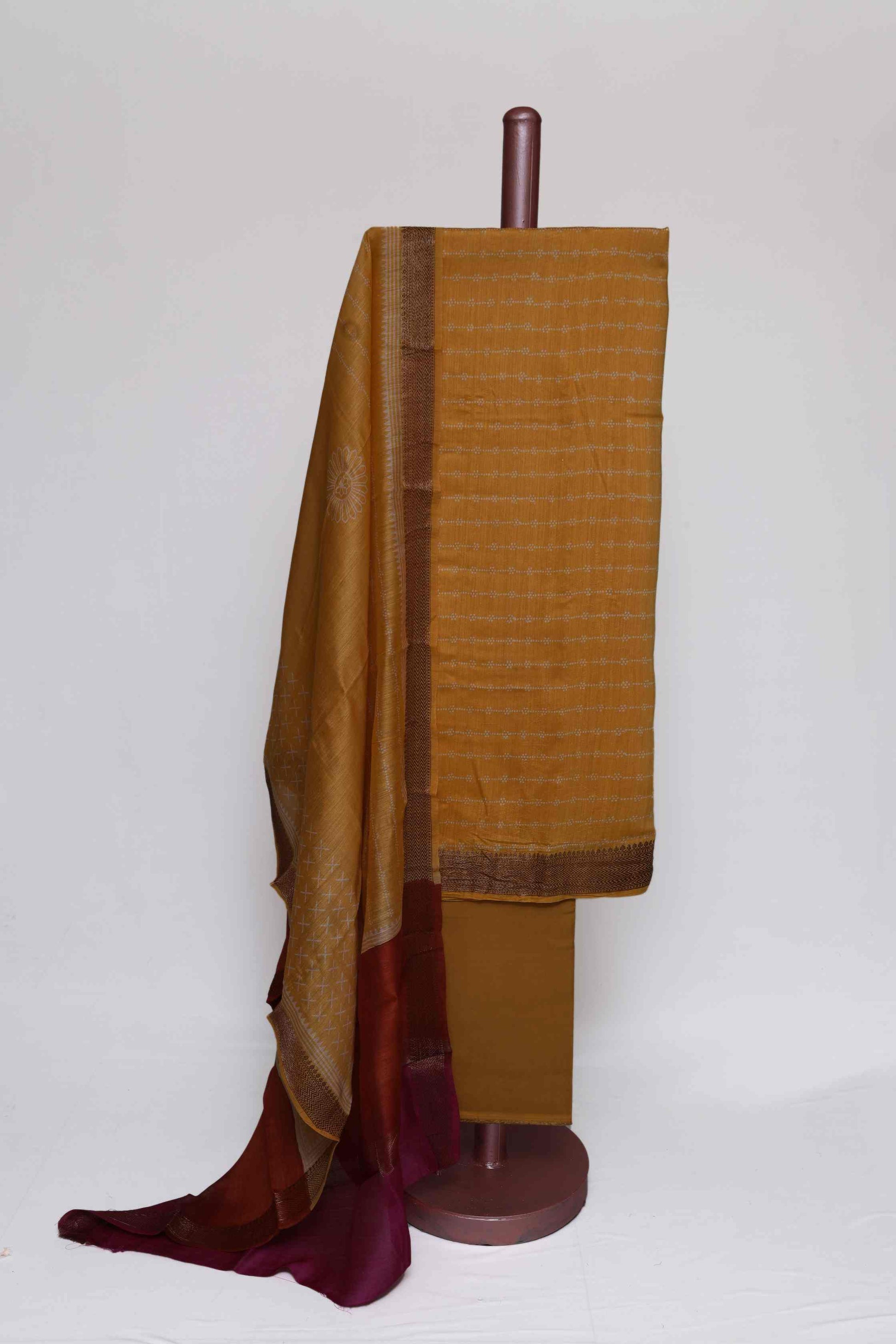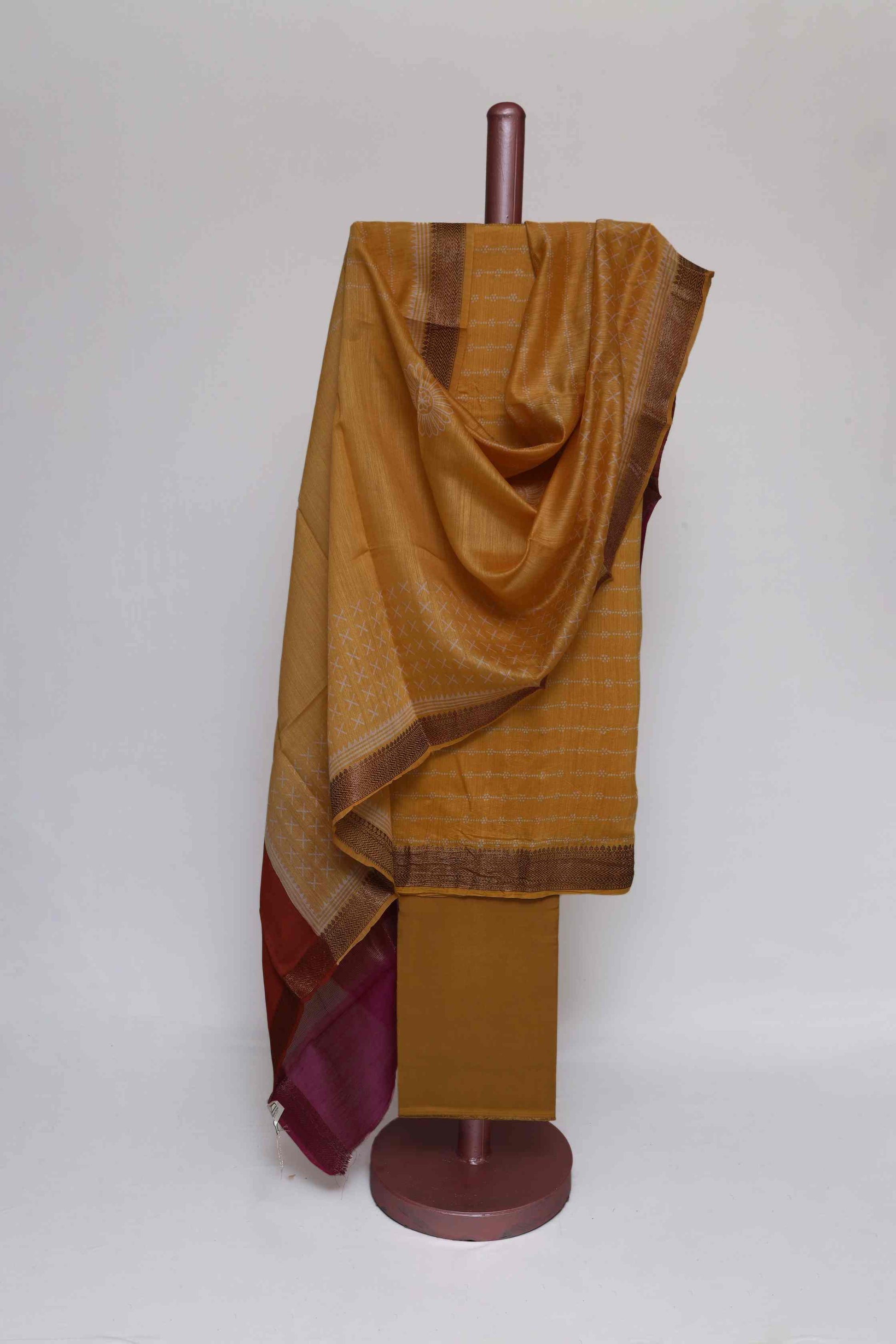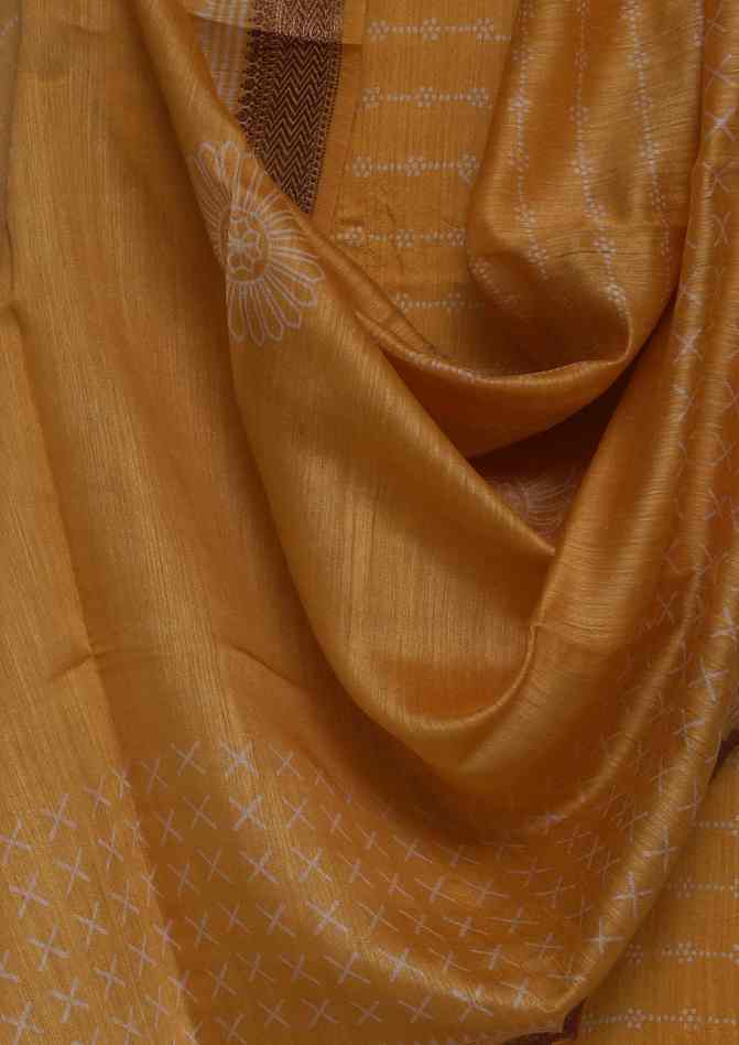 TURMERIC YELLOW PRINTED TUSSAR SILK ZARI BORDER UNSTITCHED SUIT SET